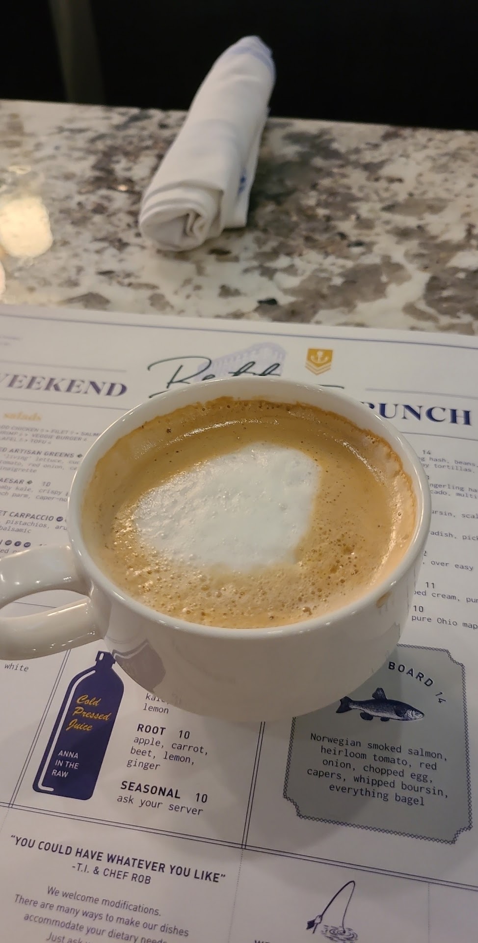Read moreLet me start by saying this place has amazing ambience, its super clean, and has a lot of potential. We showed up with reservations for a party of 8, the table was ready, and we were seated fairly quickly. The staff at the front, a older taller gentleman & a younger woman with braids, was not the most pleasant greeters but they weren't super rude either. We sat and waited for our party and it took about 20 minutes for a server to come up. Upon being greeted she took our drink orders, when she came back she forgot a couple of them. (Bloody marys and lattes) She blamed the coffee drinks on the espresso machine, which happens. We have all been servers years ago so we have a lot of patience but her forgetting the drinks or the drinks taking over 30 minutes to get to us each time became a habit the whole 2.5 hours we were there. It took her almost 45 minutes and us waving her down to be able to put in a food order. From there the food ticket ran over a hour and 20 minutes. Like i said we were all servers so were understanding, but multiple tables got sat, ate, and left prior to us getting food. Not just 1 or 2 but at least 4! The server just kept saying "I know it sucks"... We received no communication for 2 hours, no one came over to talk to us to apologize until the end. As soon as we received our food we asked for the bill because we were all ready to go home after being there over 2 hours waiting on food and drinks. At this point a manger finally came over and told us she had a sad server and it was the kitchens fault. We told her it was not about that, it was the fact we never had any communication until the end. She kept stating what could she do for us she already had the chef come over. Which we were confused because 1 gentleman came from the kitchen and handed us ranch and asked how the food was, which was mediocre tasting but no issues. She told us she wanted to give us all something. We waited 20 minutes and she just never came back. It seems like this place is just ran by a bunch of young people with not much direction. It has potential, the food is subpar, but the customer service and urgency lacks. I would not...