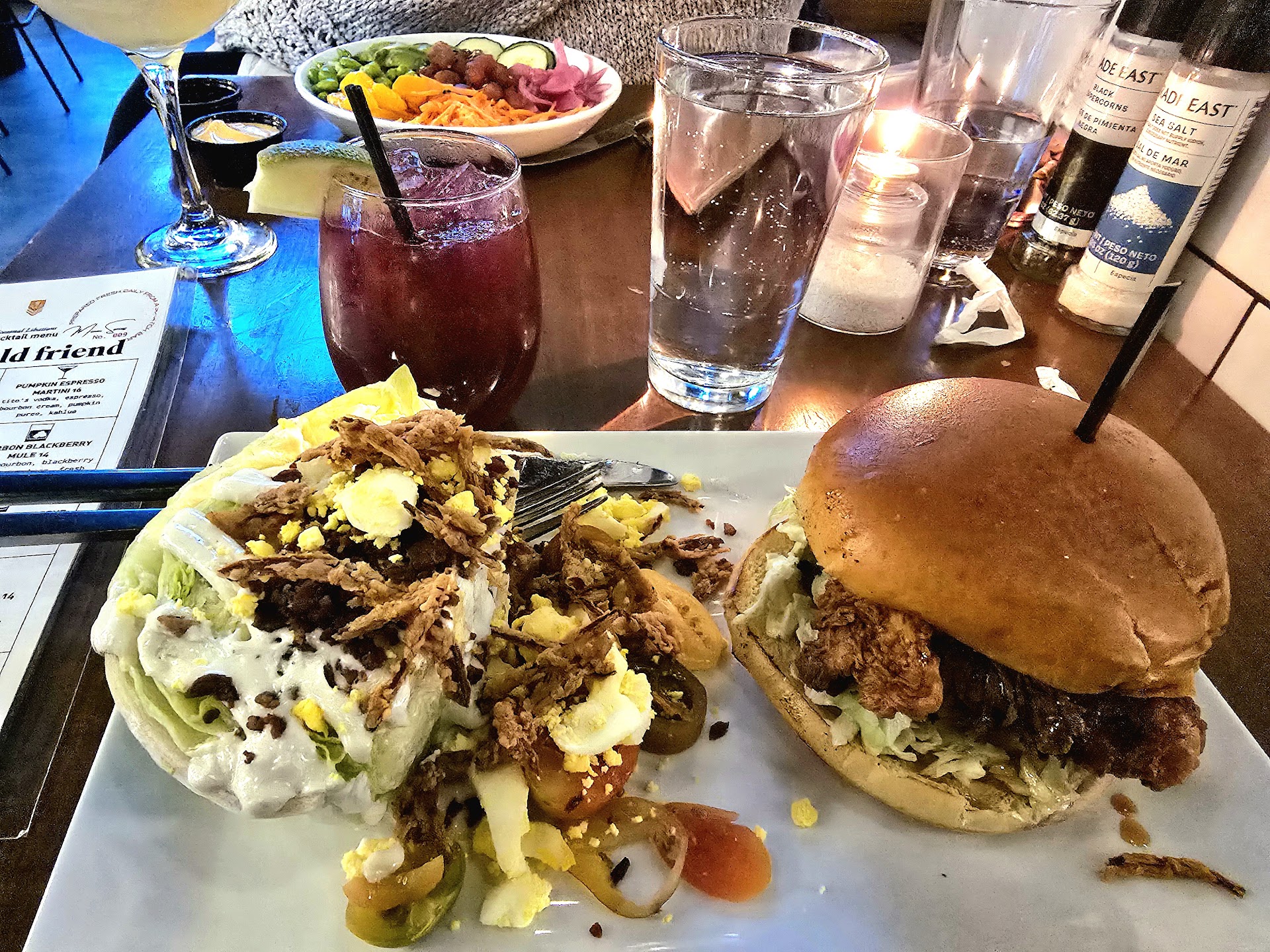 Both soups our table tried (white bean & kale, and tomato bisque) were awfully salty. I ordered the white bean caprese dish. It was about 15 canned cannelini beans covered in slightly wilted spinach, with a little marinara sauce and a bunch of red pepper flakes on top. It was very little food. Also, too salty and quite flavorless aside from the tomato and spiciness of the red pepper flakes.