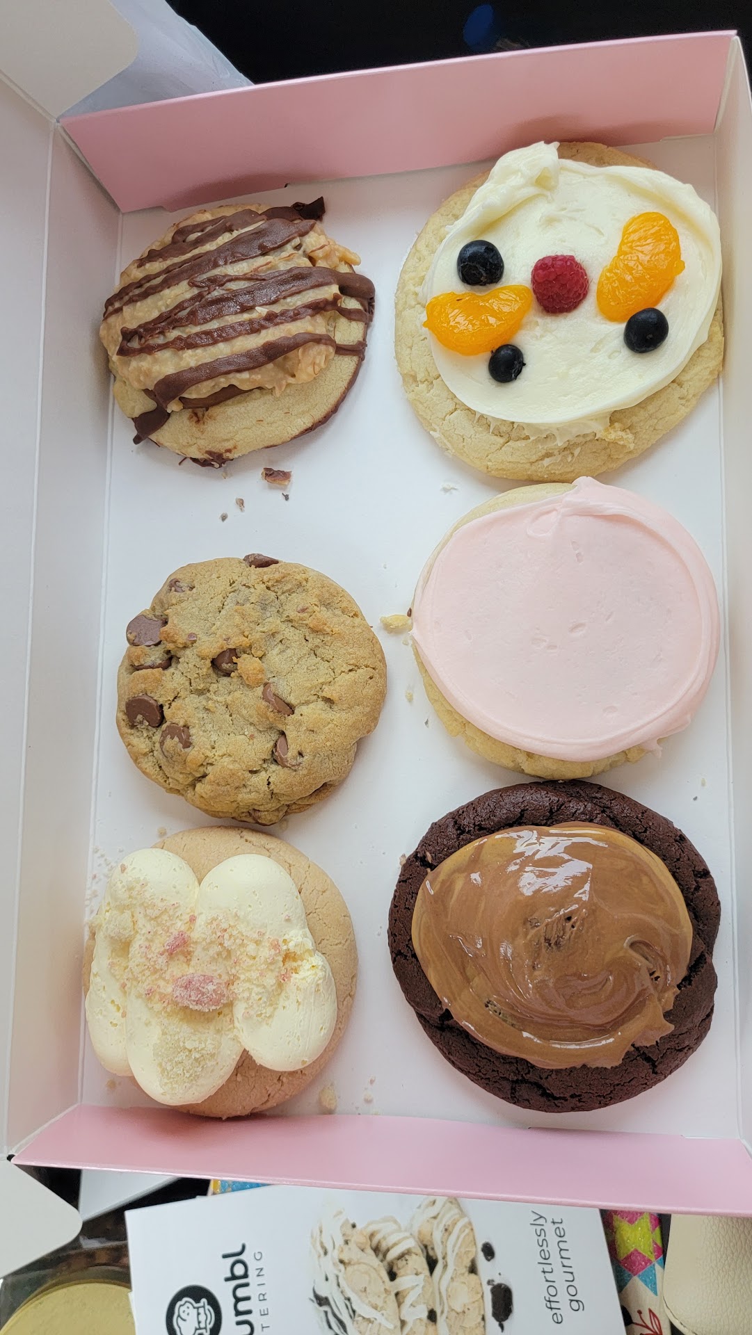 Read moreUpon entering the Cookie Crumble, I had envisioned a sophisticated establishment adorned with exquisite images of artfully decorated cookies and a display case showcasing a variety of stunning desserts. Instead, I was met with a modest interior and a simple countertop displaying a mere eight cookie options on a cutting board.