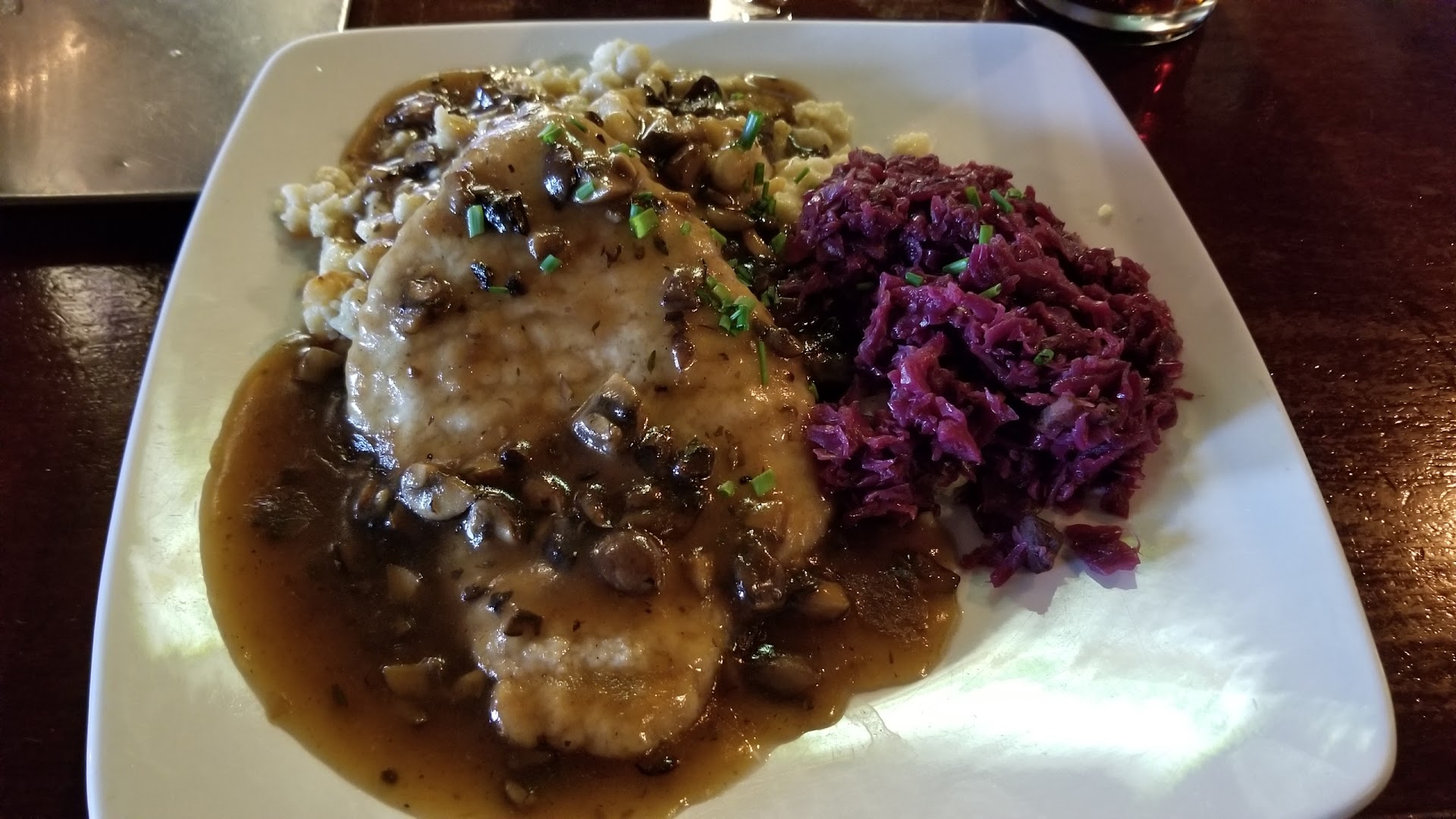 Read moreOne word, UGH! Wow where to start? As I'm walking in, a stern looking woman standing guard asked me if she can help me. Startled, I responded that I would like to eat and drink something (what else would I go to a restaurant for?) Seems like friendliness and hospitality is unknown at this establishment. The atmosphere and look of this place is old, dark, dismal, run-down and smelly. Definitely not upbeat like its competitors that have nice lighting and German folk music playing.The building's facade outside actually looks pretty good and promises more than the inside has to offer. Was by myself and got seated at the bar, fine. Bartender is lukewarm at best. Good draft selection, $8 a beer, no happy hour pricing. Ok, talking about the food now. I'm born and raised in Germany and know a thing or two about German food. Long story short, worst Jaeger schnitzel I ever had! Unbreaded, lukewarm filet of pork (gross), flavourless gravy and mushy spätzle.Lousy food for $18! You can get better food than that at any train station in Germany! I also had better food in hospital cafeterias. Do yourself a favor and go to the Schnitzel Haus in Parma or to the Hofbrauhaus in...