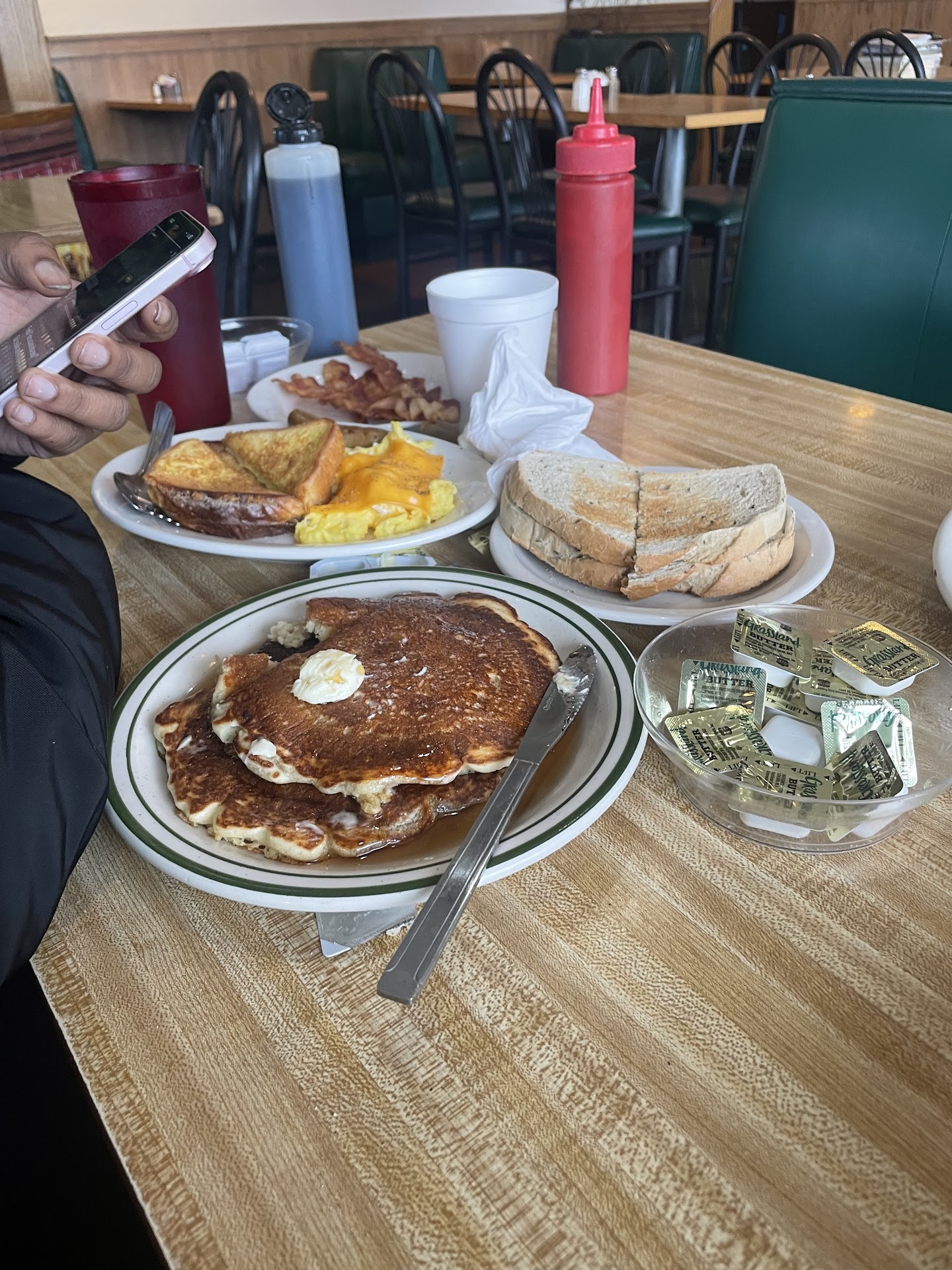 Loaded up some calories here before the road. Very economical. The person serving, she had awesome energy and a caring attitude! Good atmosphere and restrooms too. Not the best parking so lock the car before leaving. Coffee was good! I Just had the french toast but they have a wide menu selection. The oil was a bit off for the french toast, i prefer olive or canola so it doesn’t give off the rancid flavor but fresh none the less! I encourage everyone to stop by here and help keep the local businesses going!