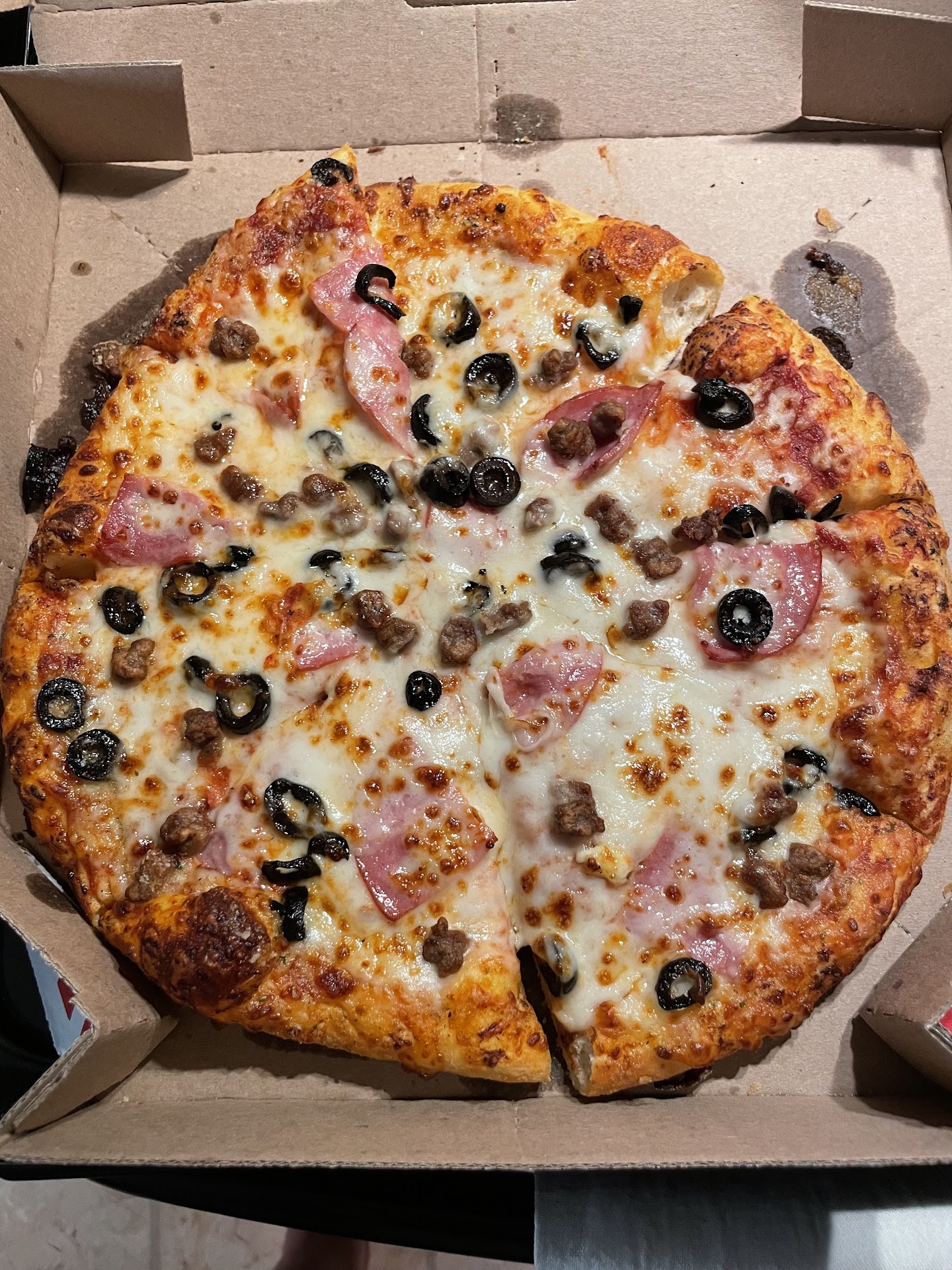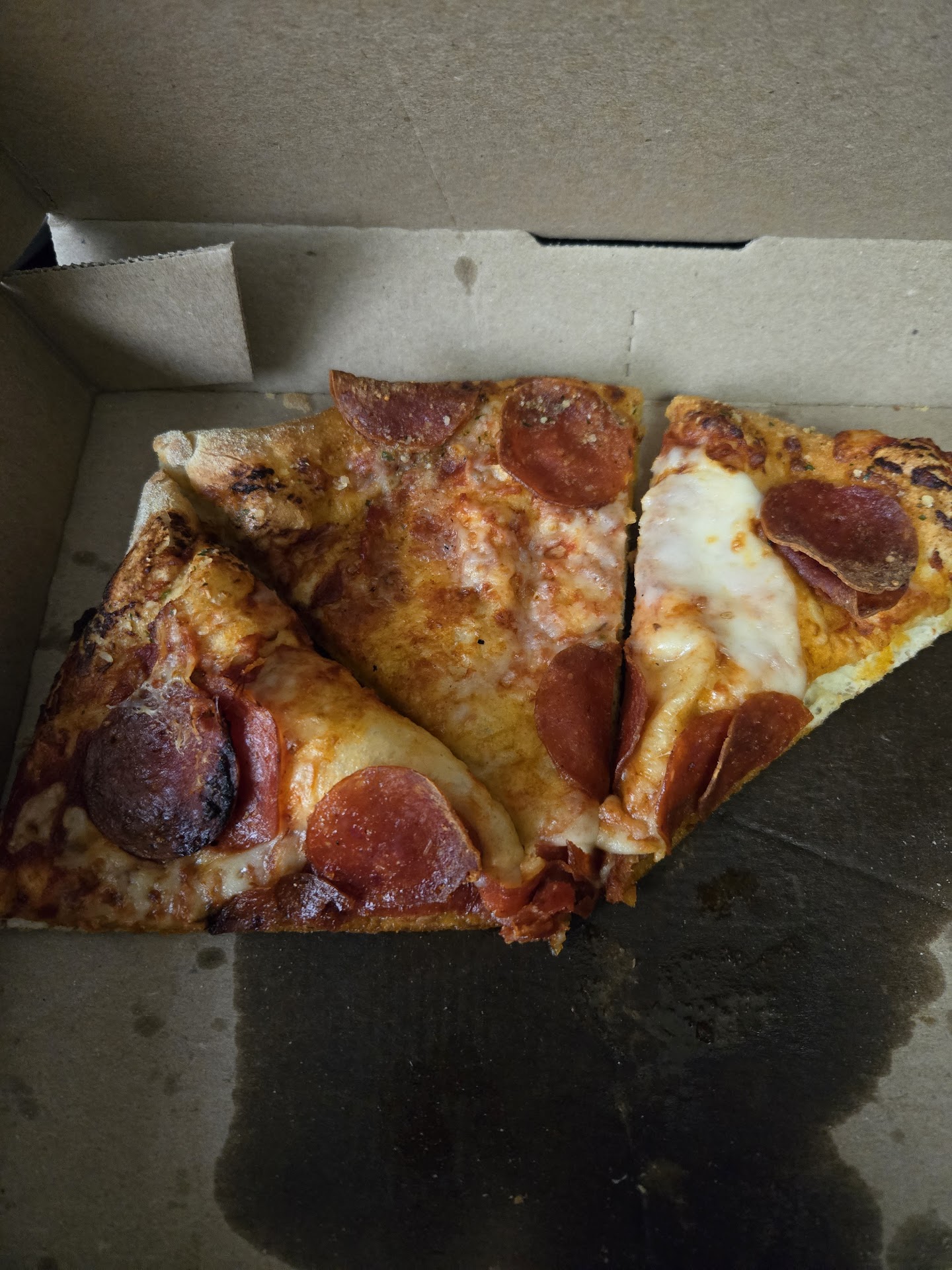 Read moreDominos is normally our go-to for pizza. We've ordered pizza, pasta, dessert, wings, and bread side items- it's almost always fantastic, so props for that. For some reason, last night's order was awful. Both pizzas tore apart like it wasnt cut into slices, which it was, and the topping slid off; annoying, but not the end of the world. But the more I ate, the more I realized something was off. I'm not sure if the dough was old or what, but the bottom was chocolate-brown and it was super thin for a handtossed pizza. We asked for well-done, exta cheese and extra sauce, and I know what you're thinking, but we almost always ask for those specifications and we've almost always have received exceptional pizza. It didn't taste well done, it tasted chewy and old. To top it all off, my family and I are experiencing nausea and diarrhea today... gross. So we're thinking no more Dominos, at least not for awhile.