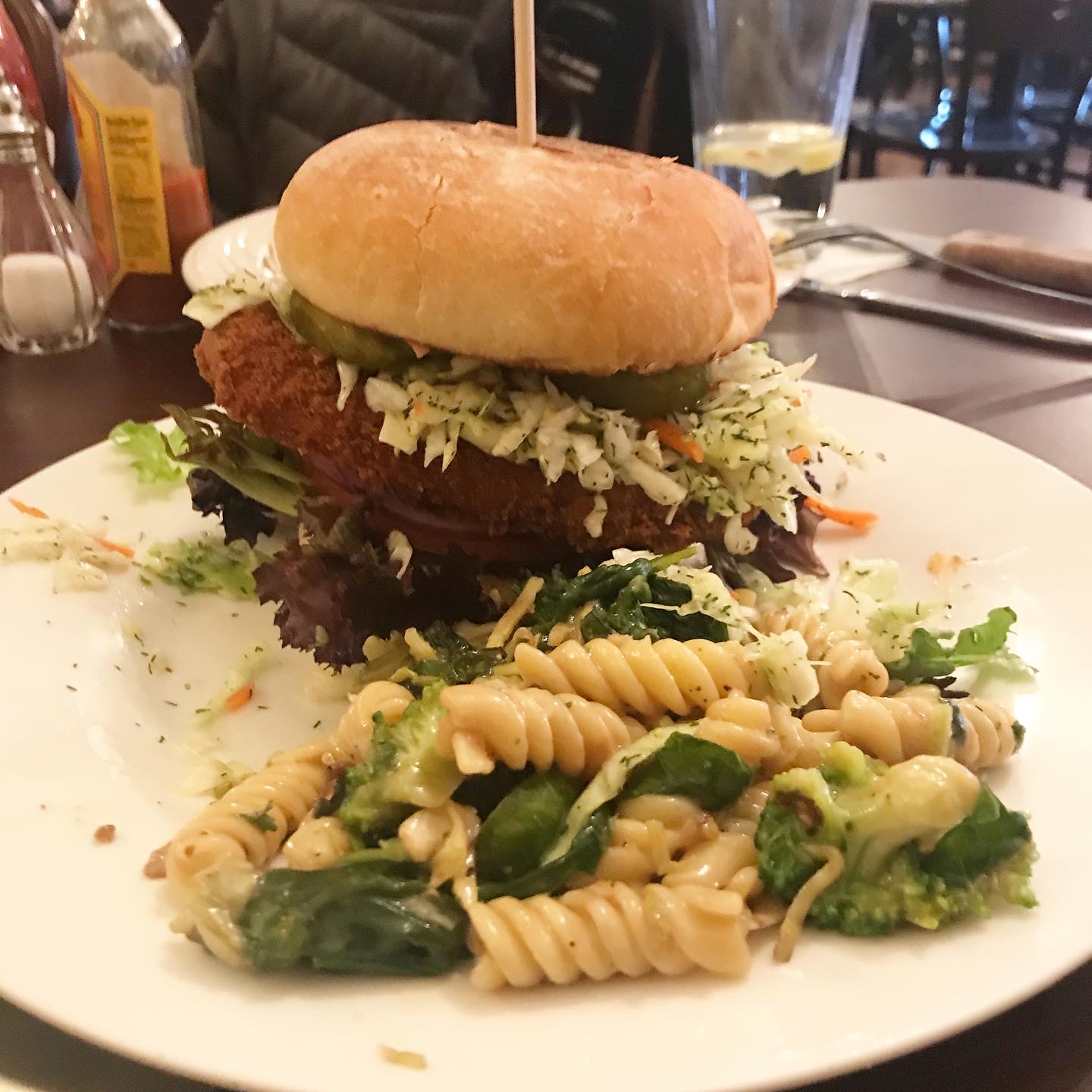 This one was comprised of thick cut pork to go with the black forest ham, very thinly sliced pickles, mustard that might have been house-made, and cheese. What set it apart (aside from a generally high quality of ingredients) was the inclusion of a lush slice of pineapple. The combination of all of these elements with whatever spices they used made it the best iteration of a Cuban sandwich that I've tasted. The gluten-free bread was good too!