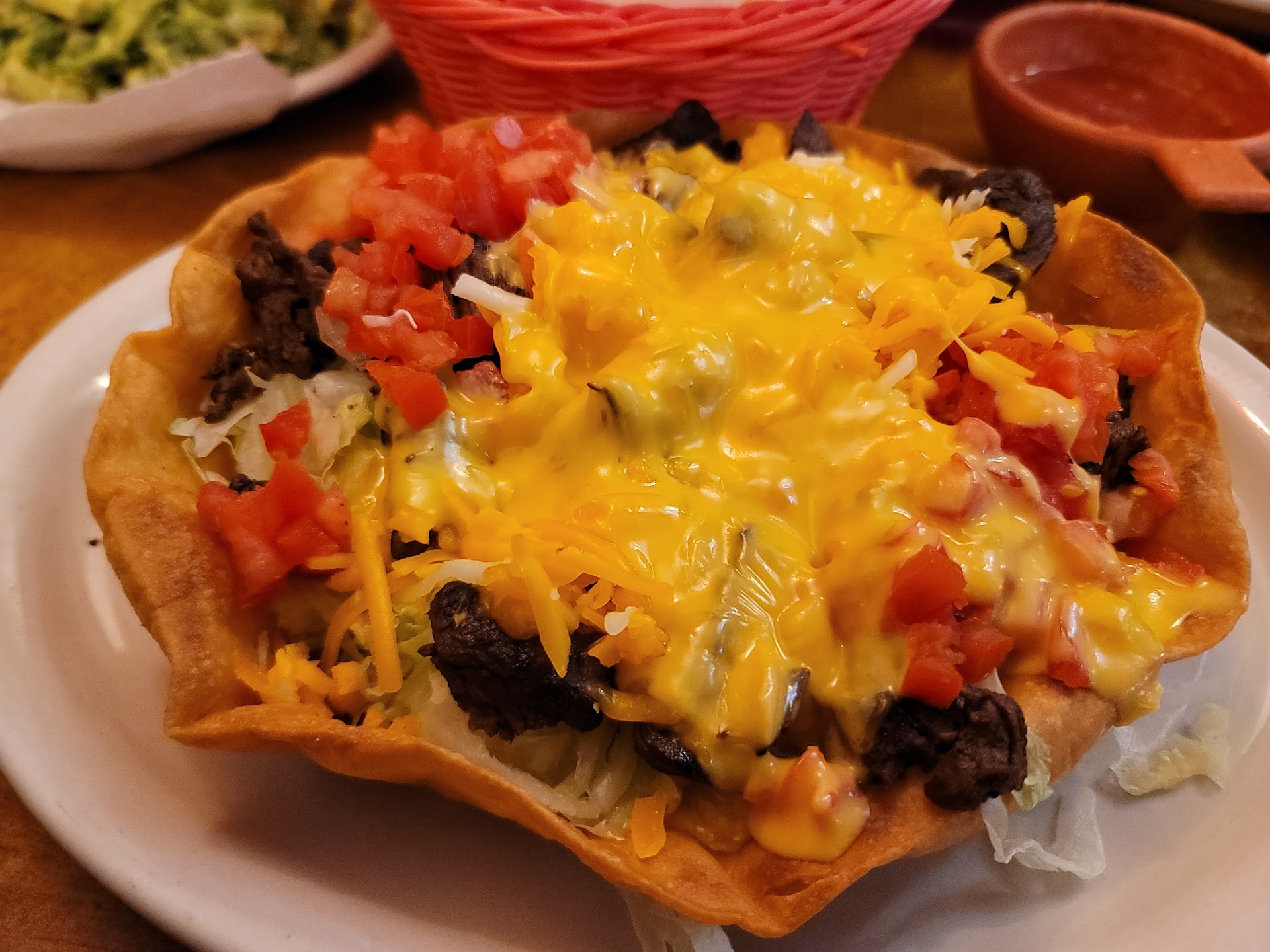 Read moreThis was our first time dining here & it was pretty good. My husband had the Enchilada Dinner & my son & I opted to split a large order of Nachos. The flavor of the nachos was good but next time I will ask if they will serve them deconstructed, since we pretty much had to take them apart & reconstruct them. The meat was piled very thick in spots & thin in others. The chips underneath quickly became very soggy. We ended up using the chips provided with the salsa to scoop up the right ratios of meat & cheese. We added a drizzle more cheese from the queso when we started to run out of the cheese on the pile & we both agreed that it was much better with that. All 3 of us found the jalapeno slices to be very good. Not too hot nor too mild.
