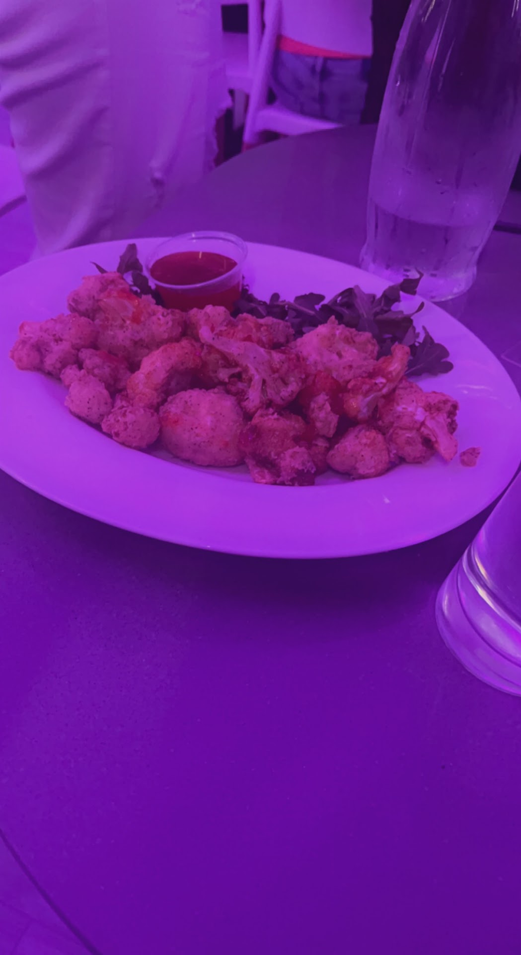 We did have to locate our server after we were all seated. It took a good 20 minutes or so to get her attention so that we could order cocktails. We ordered the cauliflower bites and the wings as appetizers the garlic parmesan was quite tasty and the cauliflower bites are very good.