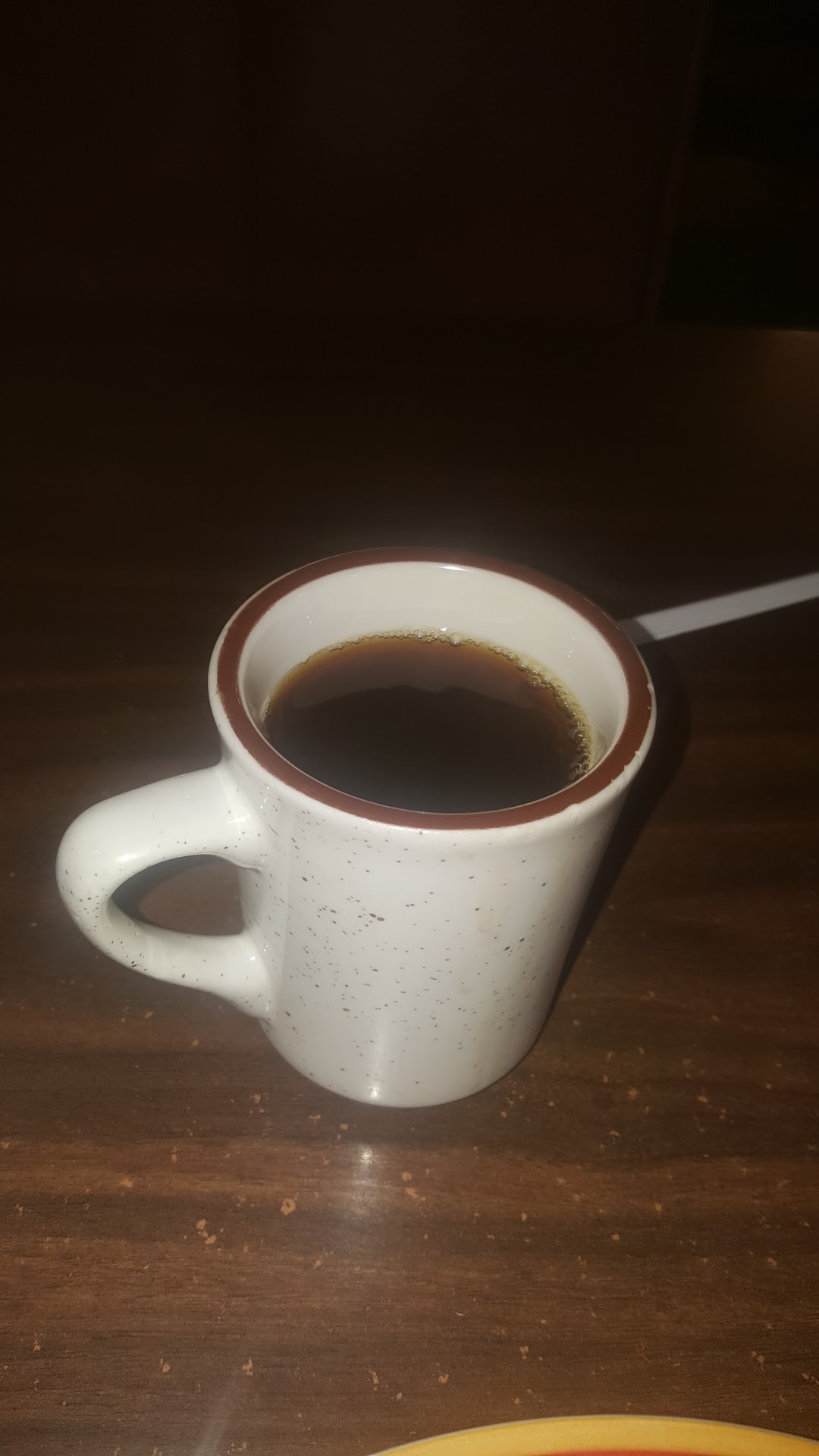 The coffee was good and not too strong. I haven’t found the bottom of my cup, and anytime I desired service, it was there before I knew it. Thank you.