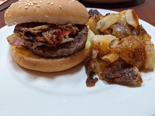 Grumpy's Cafe is a fun and eclectic brunch spot that caters to visitors and locals alike. The eatery is decorated with regional art and complimented with bright colors. They do still have clear partitions to provide some separation between guest which I think patrons appreciate. The staff was great. I appreciated the interaction they had with as well as the guests around me. Cleveland Burger week enticed me to make my first visit to Grumpy's. They offered a burger topped with pulled pork, bacon, and a slice of pineapple. I thought this was a unique combination but was leary of how all the flavors would meld together. I was pleasantly surprised how each topping complimented the other. The spice of the pulled pork was balanced by the sweetness and slight crunch of pineapple while the bacon added a little punch of salt. I have to say that the topping as what make this burger. Unfortunately Grumpy's uses a preformed (likely frozen) patty for the burger. It's oblong shape created voids in the bun. The was cooked through out and juices spilled with each bite. The bacon was also undercooked and floppy. I'm not picky about my bacon, but it did feel a tad bit underdone. If you like crispy bacon, be sure to request it. I also order a side of their Cajun home fries and a cold brew coffee to drink. The cold brew was good and complimented the meal well. The cold brew wasn't particularly smooth, but it wasn't bitter either. The potatoes however were fabulous and we're actually the highlight of the meal. They were nicely cooked on the inside and had that wonderful buttery crunch on the edges. The Cajun seasoning was not over powering and brought a bright and yet another contrasting flavor to the plate. Definitely get the Cajun home fries. Overall I was happy with my visit to Grumpy's. I wouldn't say that I would visit Grumpy's specifically for a burger again, but based on the quality of the potatoes, cold brew, and the other menu items, I do look forward to a return visit for their breakfast fare. If you're local to the area, definitely stop by. If you're visiting I would put Grumpy's on...