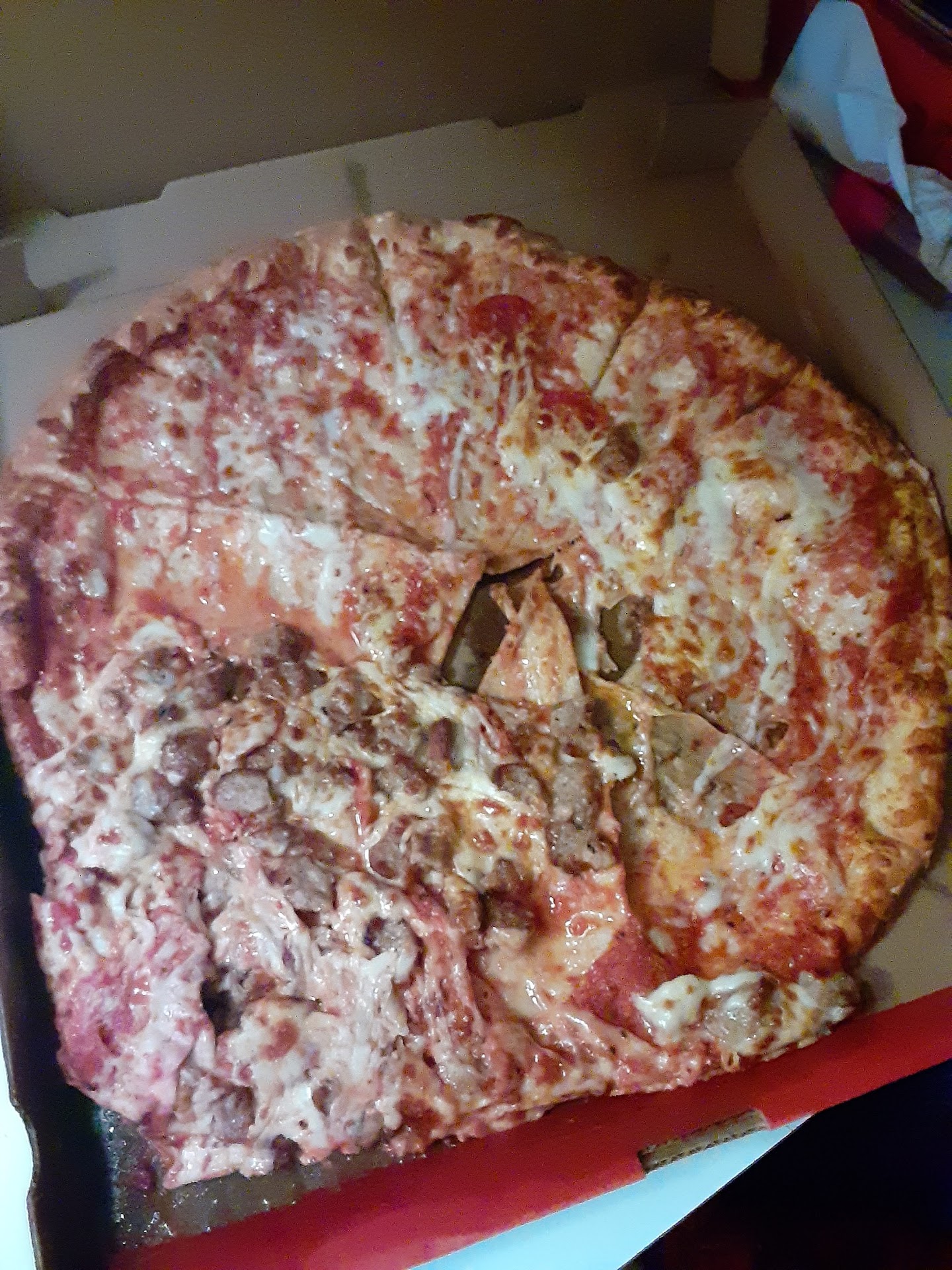 Read moreThe last three orders I received have been of poor quality. From the cheese on the pizza being thrown all over the inside of the box to missing condiments that come with the meals or soggy food. Today took the cake!! I placed an order through UBER eats and when the order came all of the items that I was charged for were not delivered. I ordered a chicken dinner an order of mozzarella sticks and a large pizza (trying to feed 4ppl). All I got was the pizza!! When I called the store they admitted that it was their fault because the girl that handed to food off to the driver was new. However they offered no resolution and stated that I’d have to take it up with Uber but they will not rectify the error even though they admitted fault. I’m probably not going to order anymore. Each time they’ve screwed up the order, they’ve offered no resolution. Nothing that says, we appreciate your business and we’re sorry..... third times a charm for me and nothing taste good other than the pizza anyway and even that is...