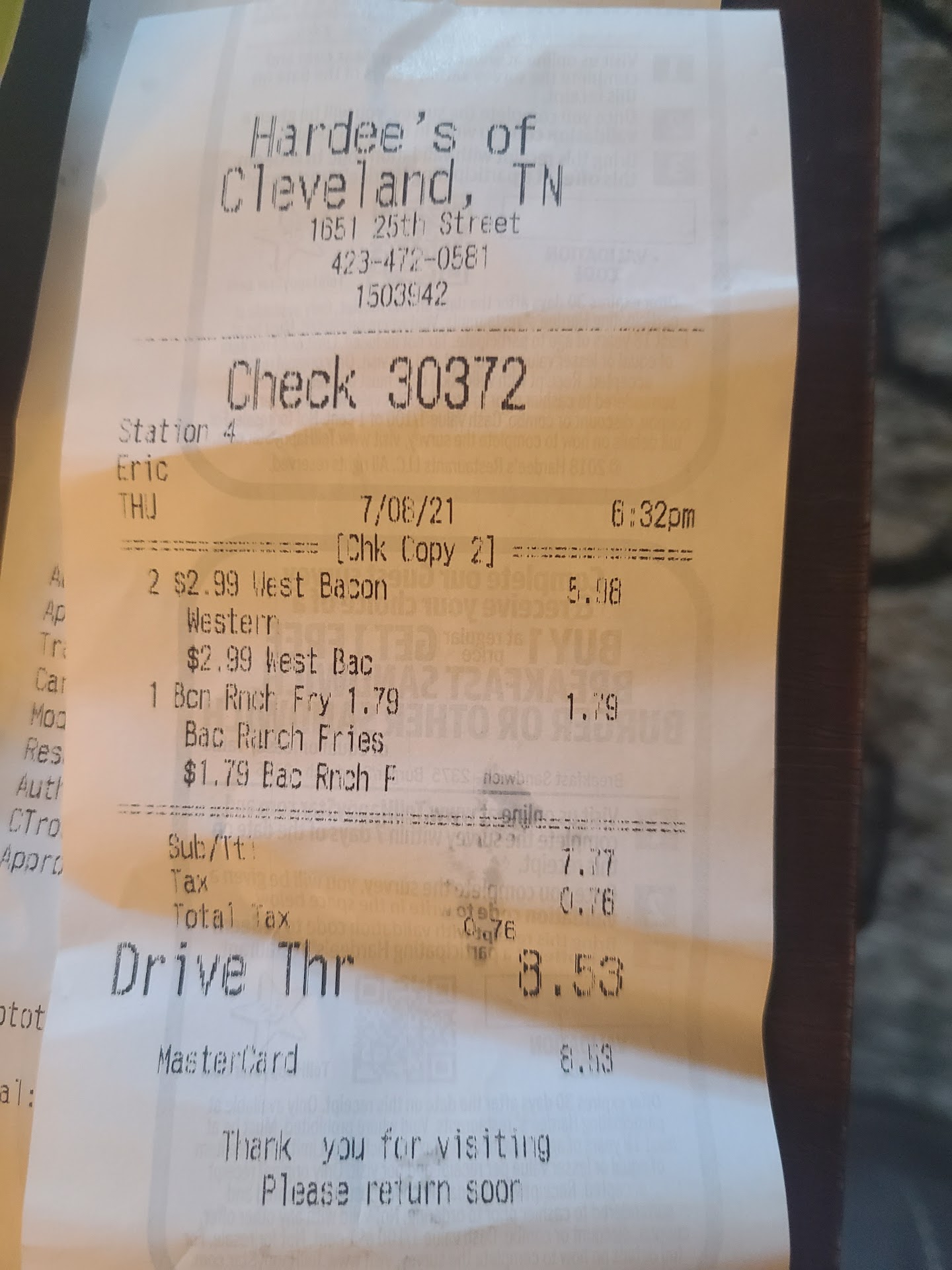 Read moreI shared a review on here a while back that was all 5 stars. I have deleted that review now. Idk what the managers name is that is working this morning 8-21-23 but I have never been treated so poorly at a establishment. He almost threw our food at us through the drive through window yelled at us because he got our order wrong. He was very hateful and would not listen to us at all.. honestly shouldn't even be working with the public. We eat here every morning and we will not return. He wouldn't tell me his name. I am considering contacting corporate. Extremely disappointed with your manager on 25th street Hardee's. Do better! This is only the 2nd bad review I have ever posted on anything and I hate to do it but something needs to happen with this guy maybe he needs a...