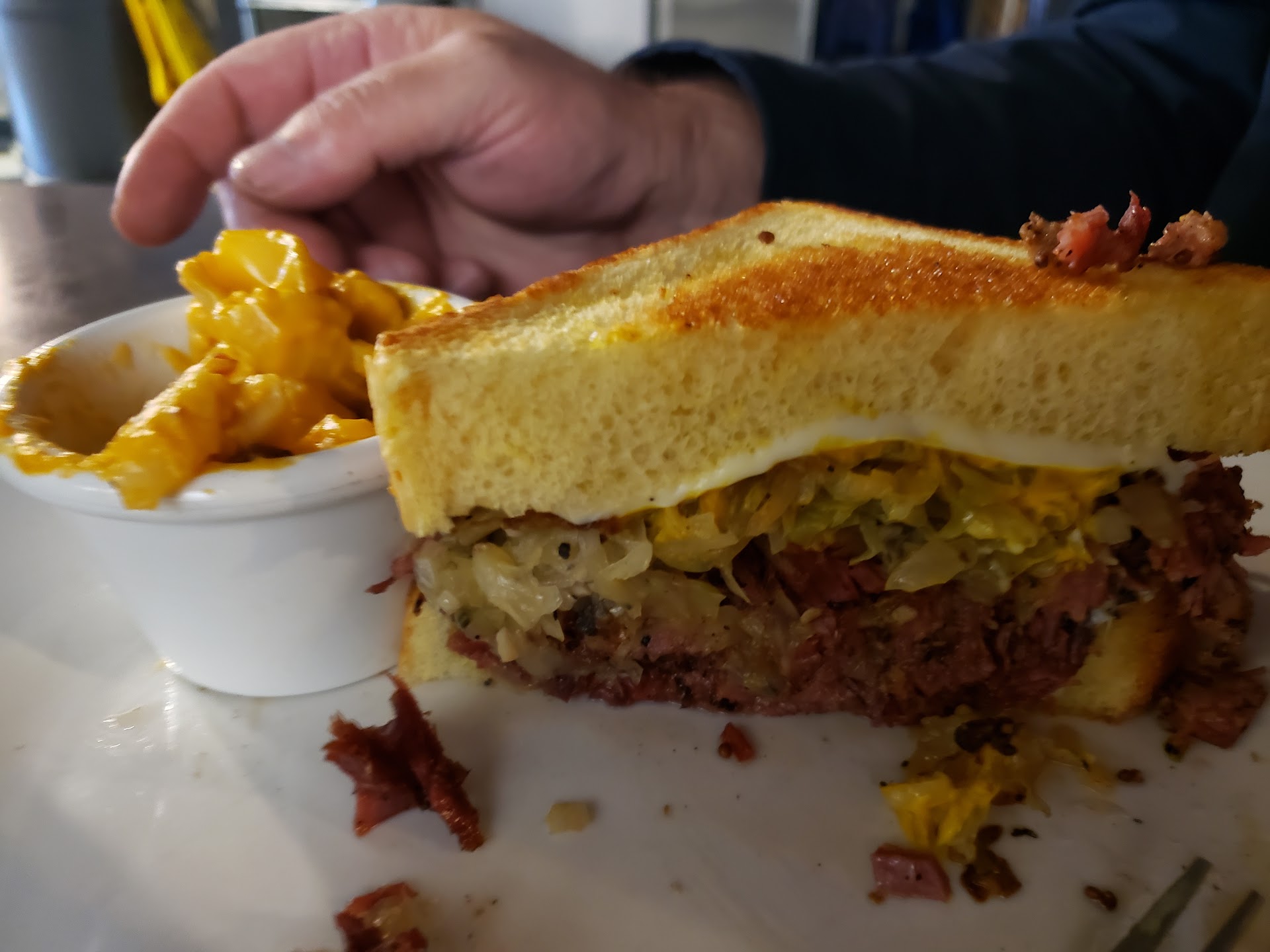 Read moreChecked this place out on a recommendation for the Mac and cheese actually. The Mac is available as a side, as well as on a burger; so we did both. I have never had a burger of the like, but figured I'd try something new and the mac burger came out hot, and had a good balance of mac to burger ratio. I wouldn't get it again but it was filling and I'm happy I tried it once. The side of brown sugar bacon Mac was less appealing to our tastes, Luke warm, and a sweeter bacon than I hoped for (prefer savory), though this is a personal preference and I can see others liking this style had it been served hot.