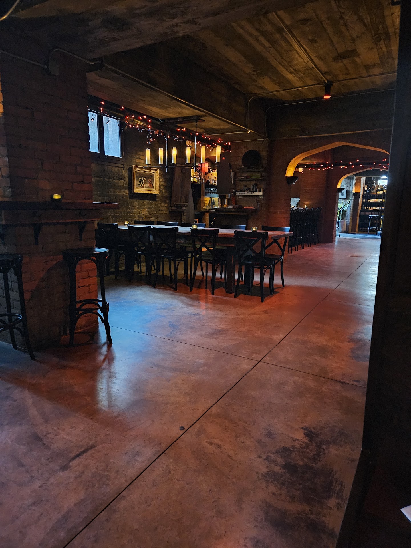 Excellent selection of craft beers and (of course) wines, and great table snacks such as bread and cheese boards. The atmosphere can't be beat. I LOVE the fake windows that look out into nothing (it sounds weird but it's actually...