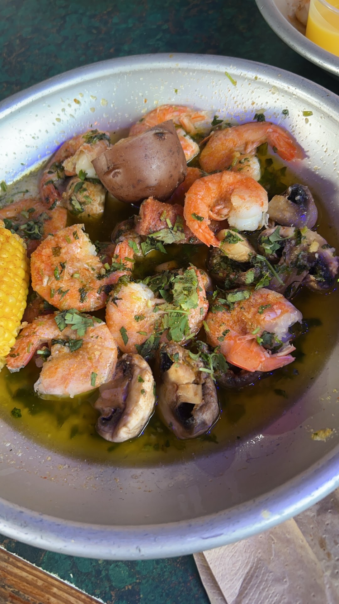 As we walked in, we loved the decor, it gives the vibe of a seafood shack that would be on an island. The hostess was warming with her greeting as she escorted us to our table. We were lucky enough to have Maria as our waitress. She is attentive, gave us her recommendations & accommodated any requests we had. I opted for the monterrey shrimp after eyeballing the table across from us & it looked ahhmazzzing. I'm glad I made that choice because every cheesy bite was yummy! I had a refreshing Mangonade to was it all down.