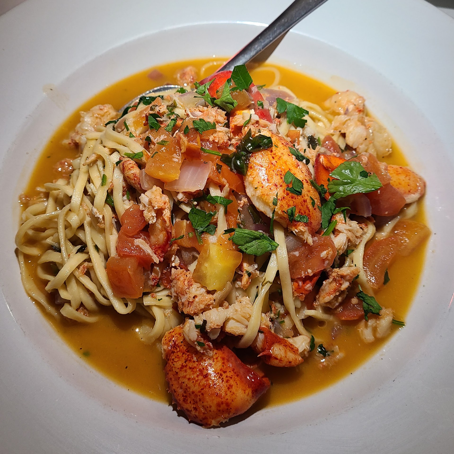 First, I have to say that the scallops were amazing, as they had flavorful crust on the outside and were very easy to cut to get to the soft texture on the inside, and still remained flavorful. It wouldn't be exaggeration for me to say that those scallops might have been some of the best I have ever had. Along with veggies and polenta, the entire special dish was a very good experience. Then the other special dish, lobster linguini, had a good amount of lobster, to the point that at certain times, it felt like the pasta wasn't the main star, which I was fine with. The sauce had a lot of flavor, but because it was a bit liquidy, it didn't really mesh with the pasta, and I think that was its only area of improvement. The cacio e pepe was different from what I have had before, as it used farfelle. For that dish, I wasn't sure if it had Parmigiano reggiano cheese, as I could only taste pecorino romano cheese, and it didn't contain a lot of liquid texture. The cheese was there, and they definitely didn't overcook the dish to the point of cheese becoming strings, but the texture still felt a bit like just pasta with cheese, rather than specifically cacio e pepe, if that makes sense.
