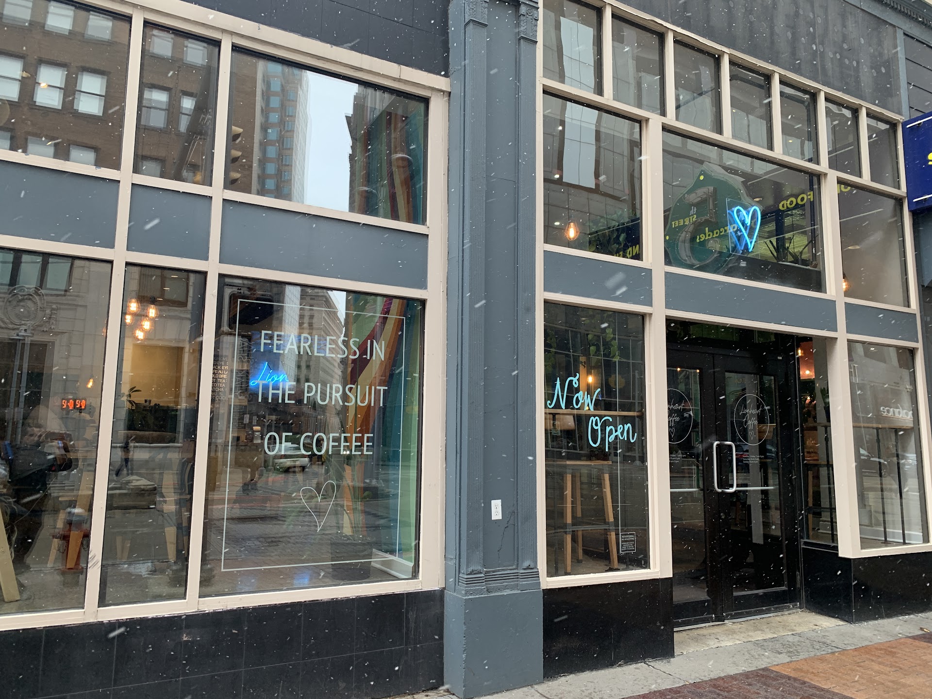 Read moreSuch a great experience! We absolutely love coffee shop experiences especially since coffee is one of our favorite things in life. We went for a free Yelp elite event. The vibe inside is super cool with a really nice Cleveland mural on the wall and plants surrounding the interior. The place is small and can get packed when it gets busy.