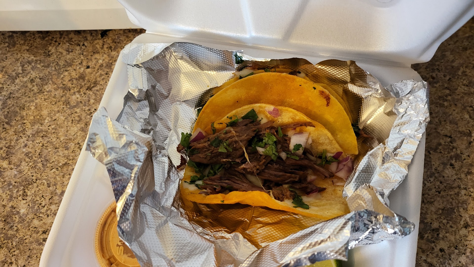I hate hard tacos, but since I was really hungry, they were so expensive and since my lunch was nearly over, I ate them anyway in the parking lot of my work. The chicken tacos were very bland, but the beef tacos were disgusting and after looking it up, I realized that they tasted true to the birria name (Goat meat). In other words, they have a very weird Middle Eastern lamb like flavor that has no business being on a beef taco. Also, the box they cam in was gross with greasy finger prints all over it. See the photos. Worst of all, as we all know, tacos are messy and they gave me a fork... but NO NAPKINS!!! Afterword, I remembered that they forgot to include napkins the last time also.
