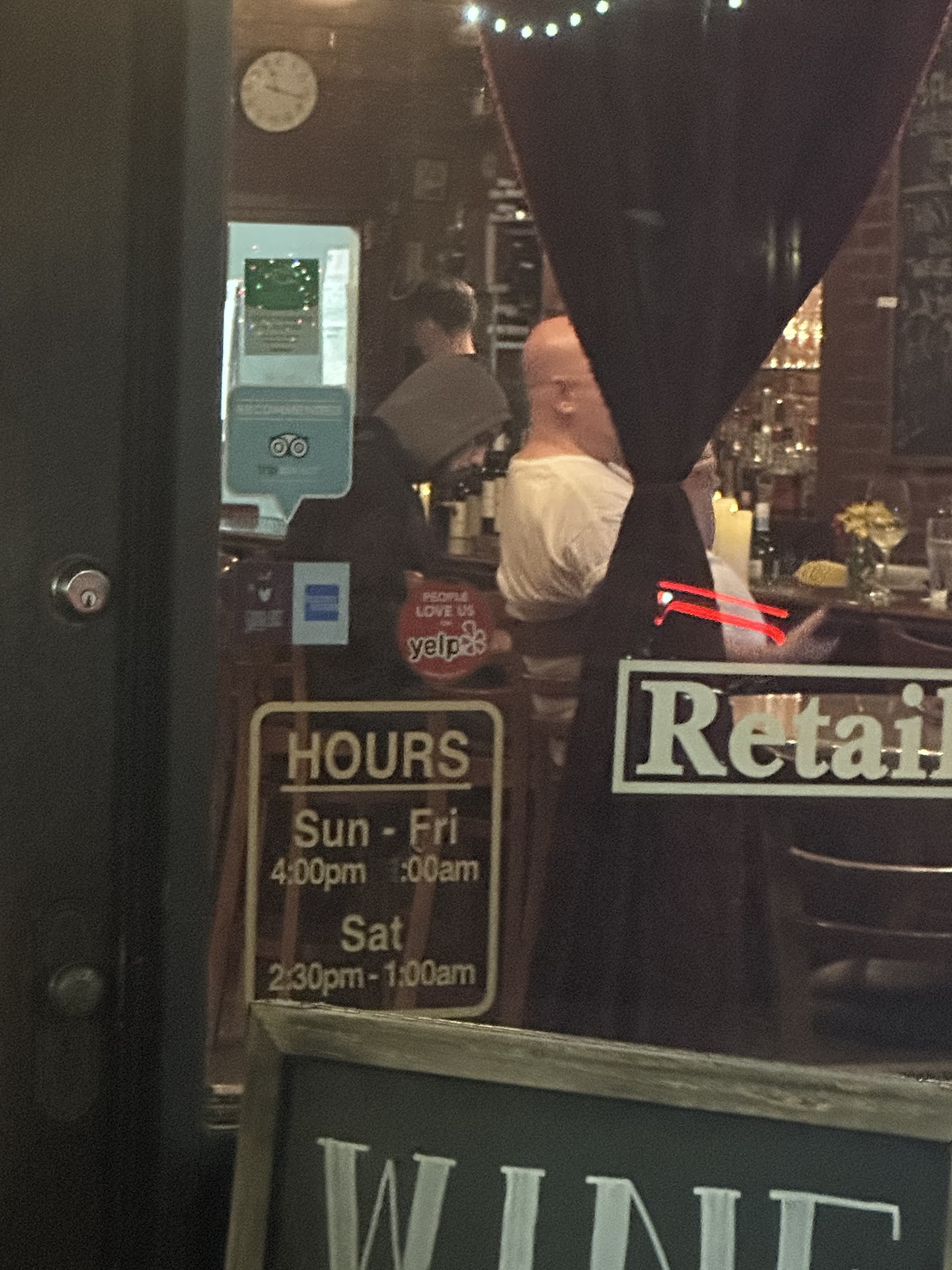 Read moreWe stopped in at around 8:30 after our anniversary dinner with plans on ordering the baked brie and a bottle of wine. We stood at the bar for around ten minutes waiting to be served and it was apparent that all of the attention was on the private comedy show in the back room. When we were finally able to order a drink, we were told that the $9 cabernet on the board was sold out without offering an alternative, we then ordered 2 glasses of the $9.00 blend, and were told that the total was actually $21.60 due to tax. Apparently the older female bartender adds a 20% tip to each order. We only drank half of the wine as it was too sweet, we had to ask for our own glasses of water, and no one asked us if we wanted to see a menu. Very disappointing experience, and put a damper on our anniversary celebration. Hate to leave a negative review as it's hard to find good help these days, but we're still disappointed...