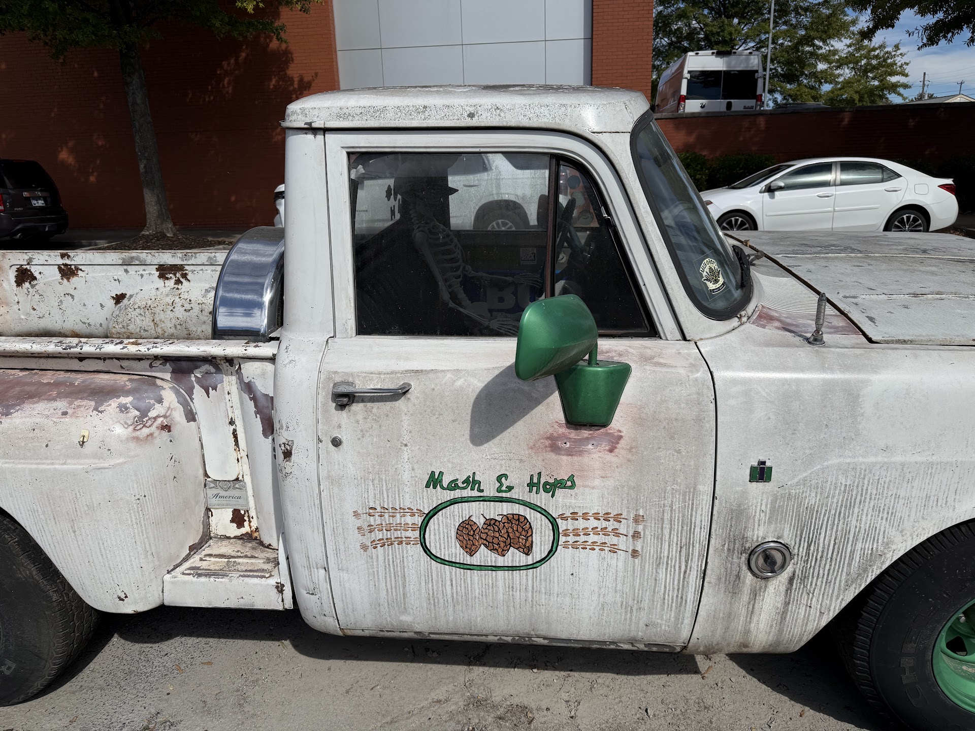 Mash & Hops sells, duh, beer. You can buy a 32oz or 64oz growler & continue to bring it back to M&H to be refilled with whichever on-tap beer you please. While they don't (yet) serve pints due to local ordinances, the owners told us they're working on that & hope to be able to soon/eventually. For now, you can sample up to four of their on-tap beers; they swap them out each month.