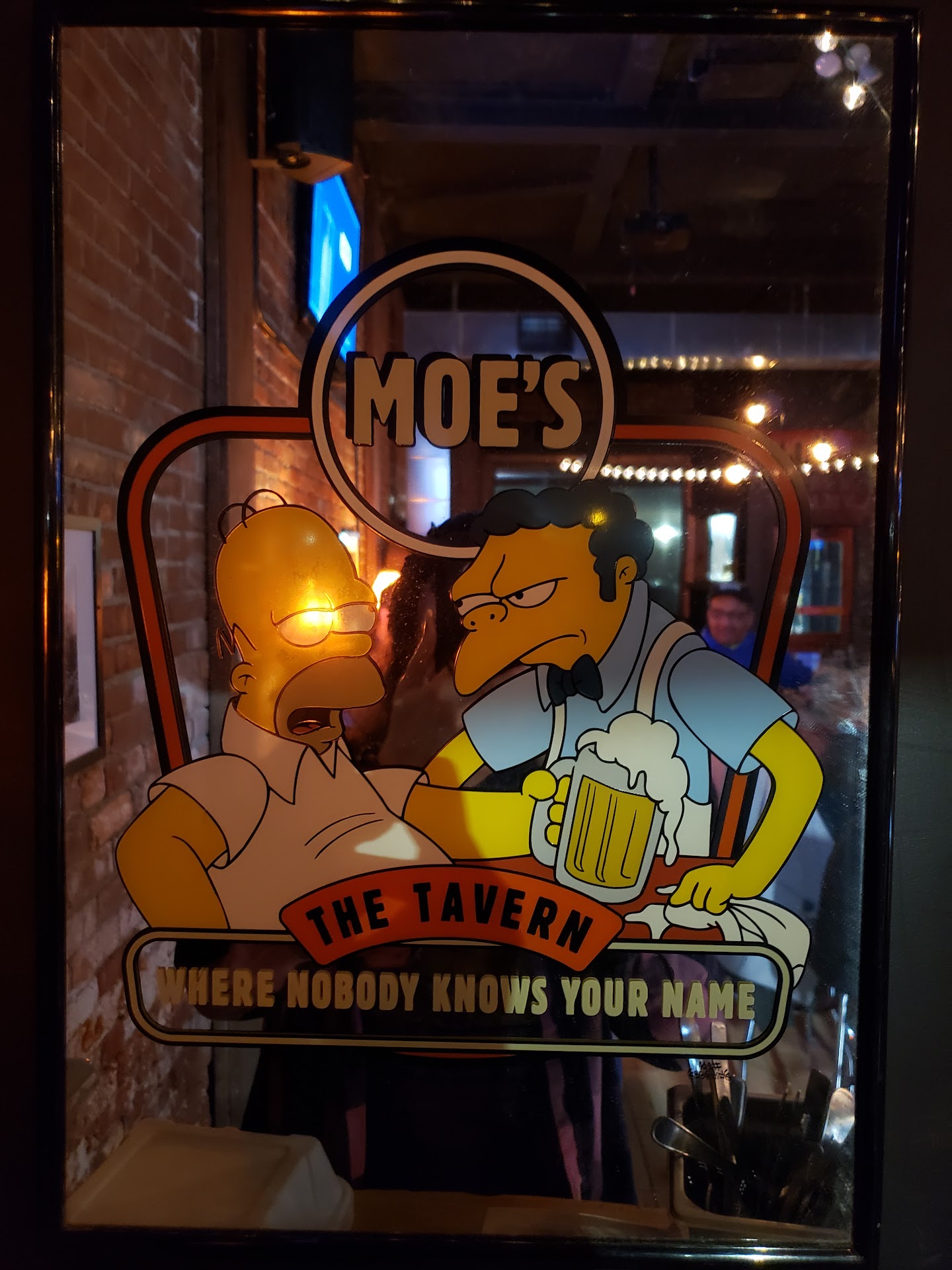 Read moreIt took me 2 evenings to write this review. After much discussion with the bartender (Geoff, he might be a manager, but he also works at Hofbräuhaus) I've decided to give them 5 stars. Geoff didn't make me change my review....(wink wink)....upon reflection of my experience, I will say Moe's Tavern is an establishment that has employees that go above and beyond expectation to ENSURE that their reviews are always positive. Hypothetically, they may even track you down at another restaurant and encourage you to change your reviews. Strictly hypothetically of course.
