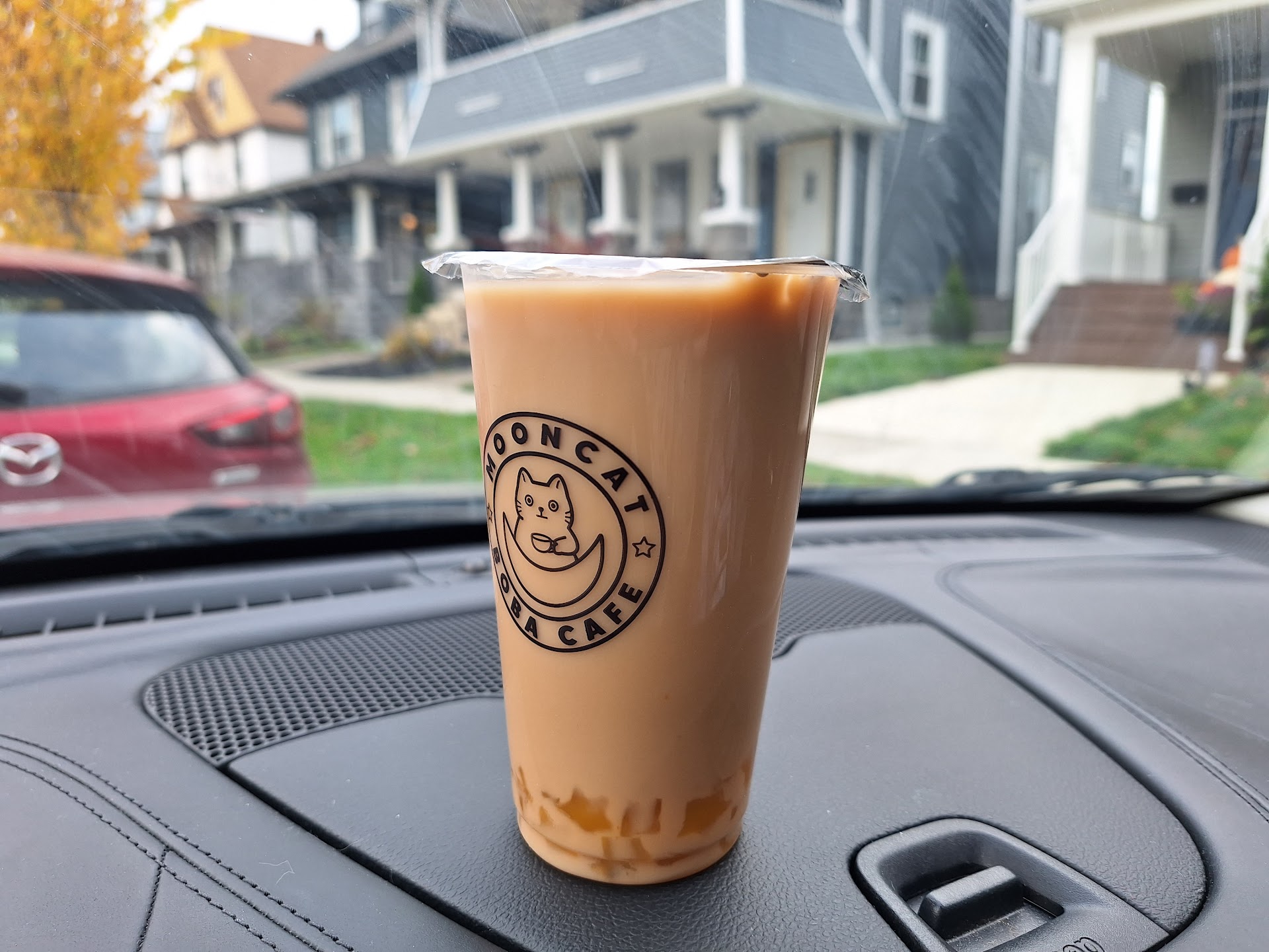 Read moreI've been waiting for a place in Cleveland that truly understands quality bubble tea!!! The flavors and options are super authentic (personal favorite is the coffee option which combines the power of coffee and tea in one incredible combination). The mango slushy is also an absolute flavor bomb! The tapioca pearls were just the right consistency. I've had chewy or too soft and I'm happy to report these were right on the money. The popcorn chicken and rice bowls were a great portion size; I recommend getting the teriyaki as your sauce choice. The chicken was nicely fried and crispy, tender, and very meaty. When you come in you're greeted by friendly baristas and the menu is prominently featured on the wall, as is the cutest moon+cat+tea logo on a stylish wooden accent wall. You can order from a digital kiosk or in person at the counter. Both times I visited it was quite busy, but even so there was little down time between ordering and receiving my order. I think this place has great potential to be a local staple, my only complaint is that I don't...