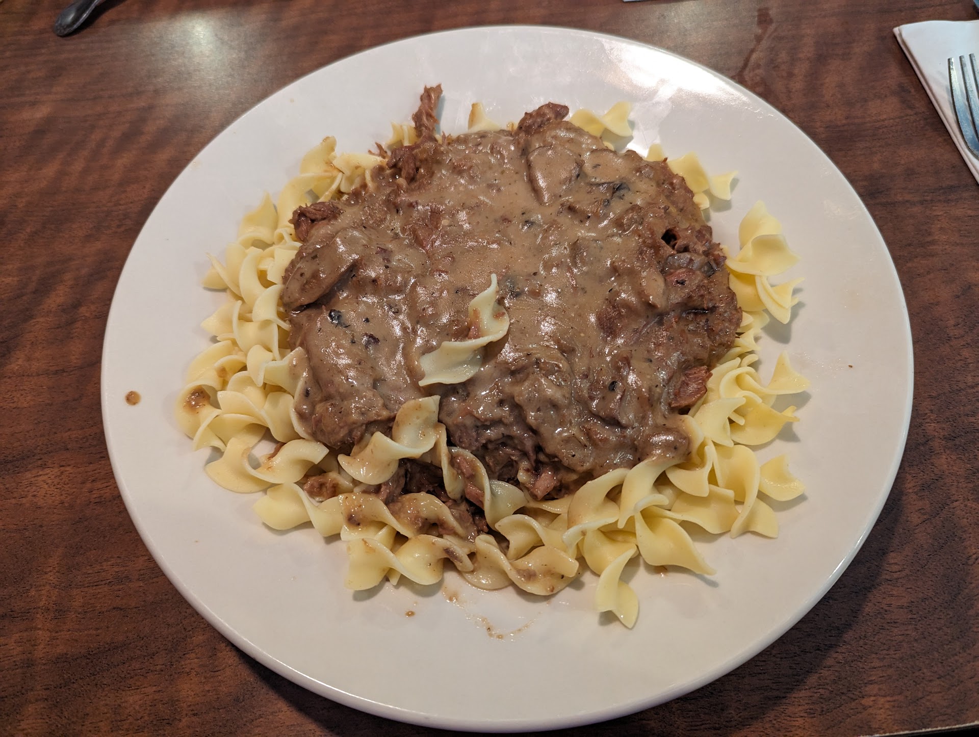 Read moreWe were seated soon after entering, nice atmosphere, my mother recommended this restaurant, for her birthday dinner, immediately after being seated, by the hostess, very polite gentleman approached us, asking what we would wanted to drink, after bringing our drinks, he began explaining the soups of the day, his name was Rich, and he made the experience that much more enjoyable, a professional for sure. My mom ordered the Clam Chowder, Cole Slaw, Walleye fish dinner, I ordered the Chicken Soup, Small Tossed Salad, and the Latkes meal, it all come hot, and well flavored, my mother mentioned her fish being cooked nicely, with a nice outer crunch, the Bleu Cheese on my salad was flavorful, as well as the salad, the soup was delicious, added a little pepper, my Latkes meal, the Corned Beef was tasty, the Potatoe Pancakes, were cooked well, tasted nice, a very enjoyable meal I have to say, the serving size were large enough to fill me up, I can't wait to visit again, when I come up. I hope to have Rich serving me again, before we left, we had to stop at the pastries counter, soooooo much to choose from, my mother ordered the Strawberry Peach Cake, and me well, I ordered two, pieces, the Carrot Cake, and because I was thinking about my late father ordered the Caramel Cake as well, the young ladies working the counter was very welcoming, and professional as well, it will a evening not to forget. A big thanks to the cooks as well.the food...