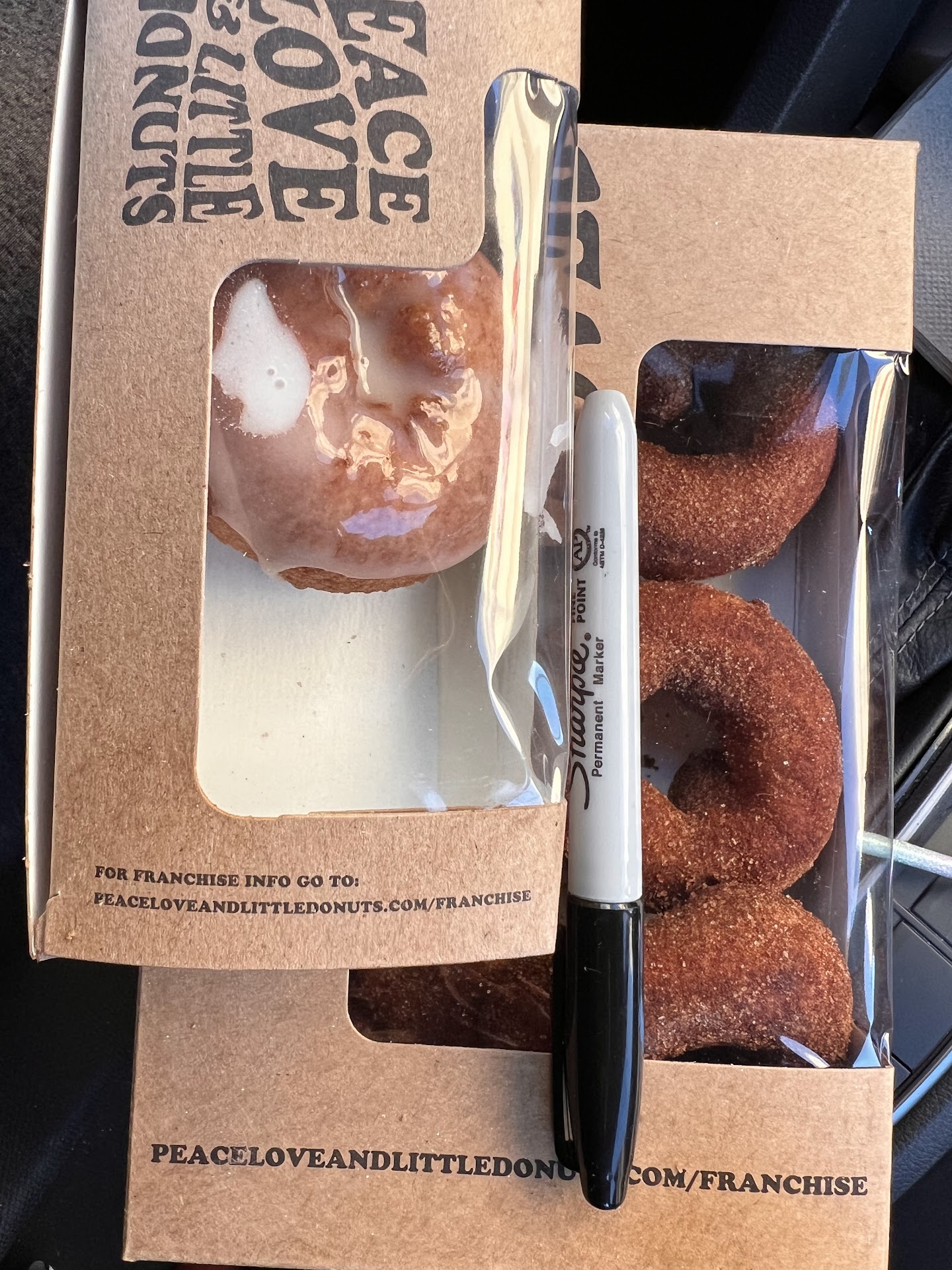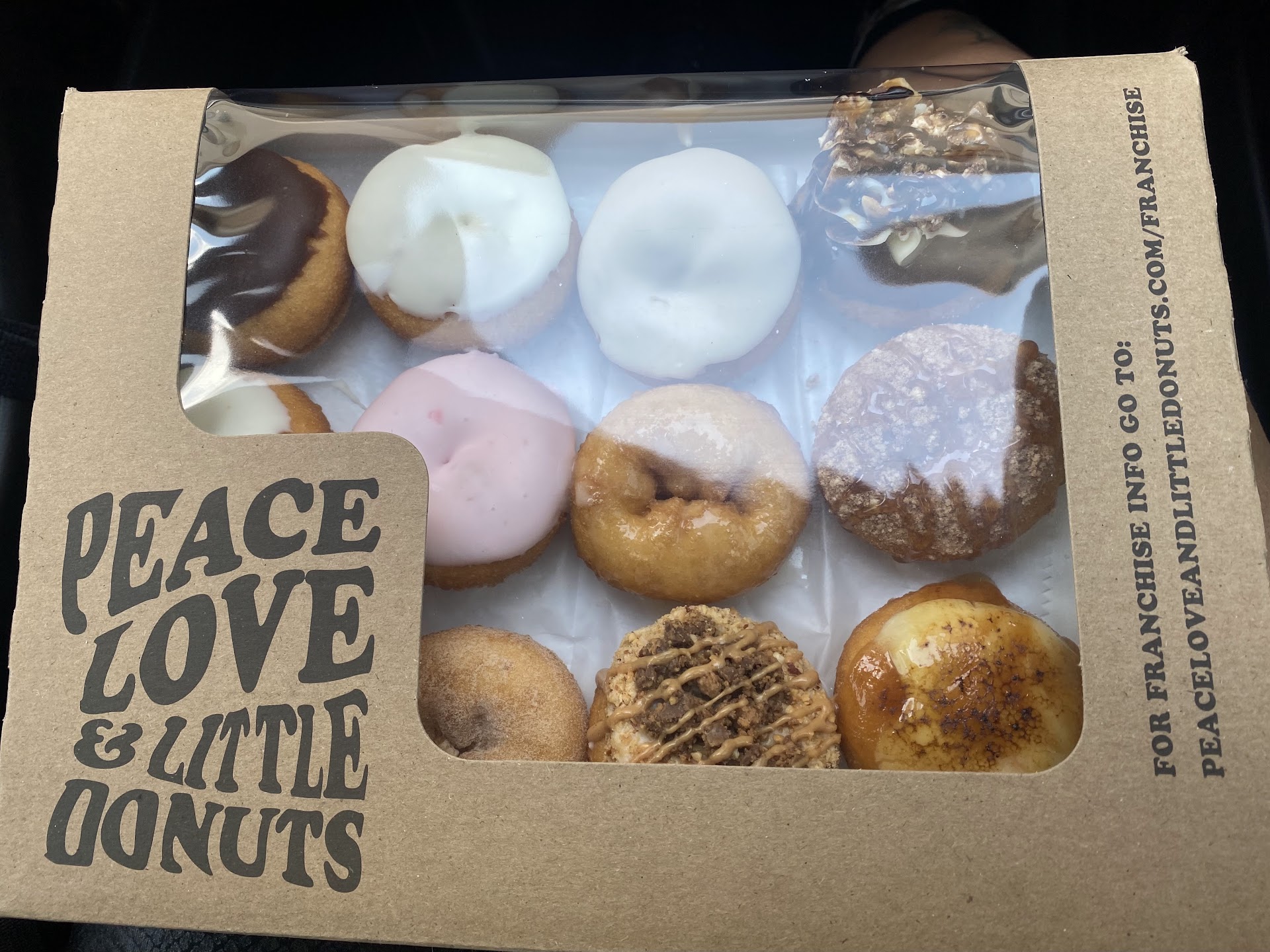 Wonderful exercise here! This place is so hippy! I LOVE it! I was blown away by all the detail that's in there, if you haven't been you really need to go-simply to look around-if your into that scene. The donuts are made right in frount of you :) there are 3 different selections when ordering your donut- plain, glazed, or specialty. It was my first time there so of course I had to try all of the earth famous Donuts. My absolute favorite in the one I was most excited about was the bacon with maple glazed donut-yummmmmm. But there was so many more to choose from. Some of the ones I got included the dirt donut, their peace sign donut which was raspberry jam with a lemon glaze, cinnamon roll donut, cereal donut, Samoa donut and a chocolate pretzel donut which was my second favorite. I found them on Living Social and had to try them. I will definitely grab this deal again if I see it. save half off with LivingSocial or Groupon, definitely worth looking out for