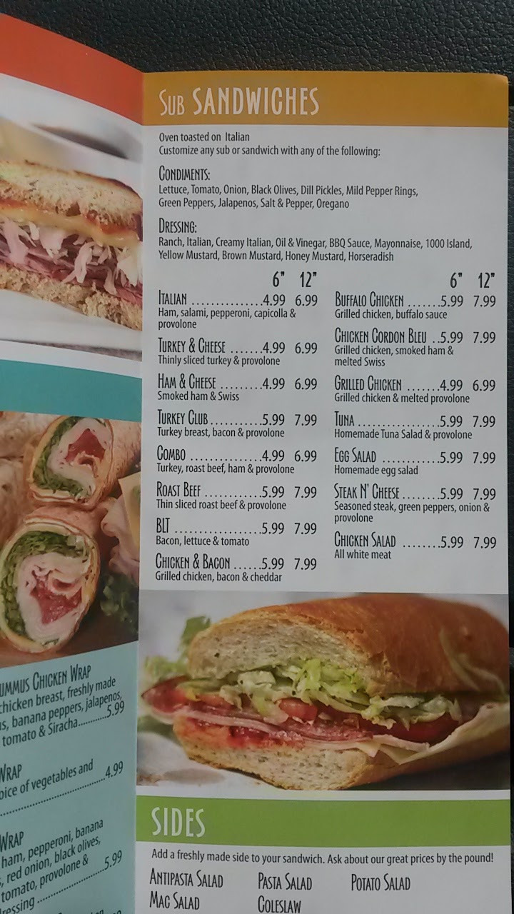 The food is fresh, and you can combine into a meal with a bag of chips & drink for a discount! The burgers were yummy. The subs were mouth-watering with tons of meat & toppings on fresh buns - way better than any atypical corporate chain. We tried the antipasto, macaroni, & potato salads, which were all good. The potato salad was a bit plain.