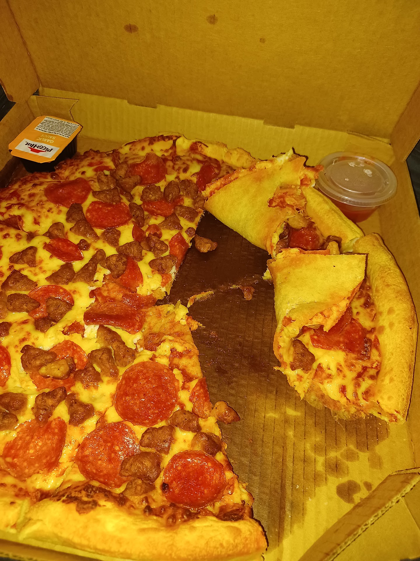 C'mon guys We ordered a pepperoni lovers and ended up with a pizza with an extra cheese pizza with like 4 or 5 pepperoni pieces on the top. My husband took it back because, you know, no pepperoni, where they proceeded to dig out pepperoni from under the extra cheese. We didn't order extra cheese he hates extra cheese. They were like "see theres the pepperoni under the extra cheese" again no one ordered extra cheese. I know this pizza hut has people trying to scam it all the time but c'mon guys when you're wrong you're wrong. It happens. Everything doesn't need to be a fight and everyone is not scamming. I mean all you need is eyes to see there was no pepperoni. No scamming we just...