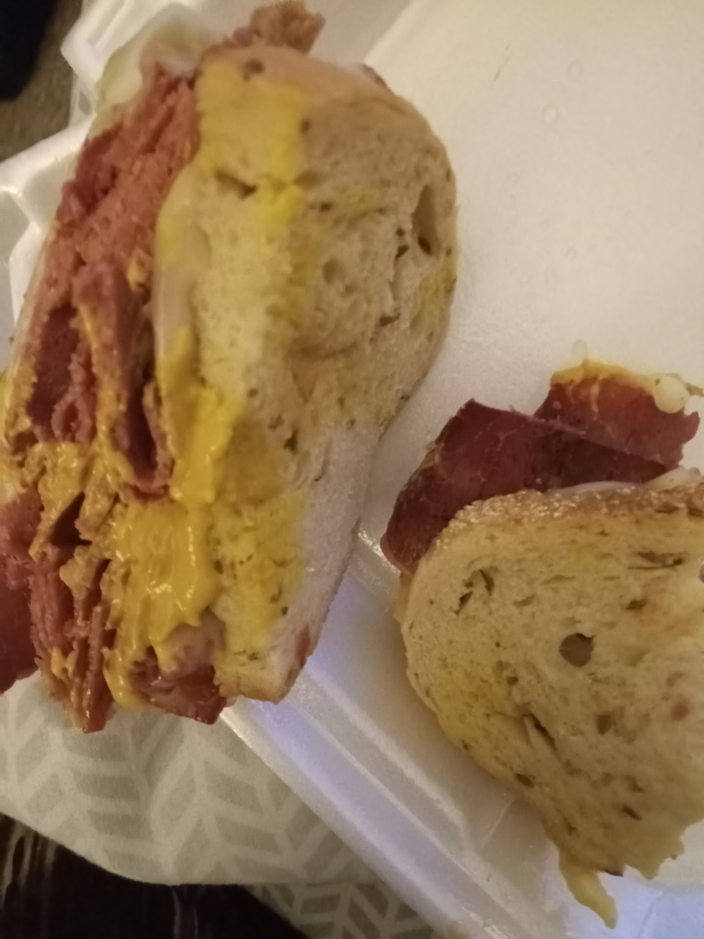 Order two corn beef sandwiches one was a Ruben fir carry out yesterday evening. The Ruben was made just right. I asked the person taking my order so the sandwiches both come hot just to make sure and he stated yes. I also requested and Im sure I did Swiss cheese on the regular corn beef and mustard and for it to be hot. I received a luke warm sandwich no cheese, mustard packets (mustard that looked old/expired) and bread that wasn’t toasted. Uuhhh I could of made this one myself for $9.99 and trust and believe it wouldn’t been way better. So to the dude taking orders over the phone around 7:30pm be confident in what your employer sells and really let customer know how you make the sandwiches because I could of saved $9.99 on a sandwich and yea just a sandwich. #not ordering a corn beef...