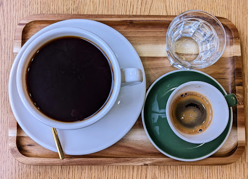 Read moreI'm going to start simple and then get more nerdy. The coffee was delicious and crafted with love by friendly, knowledgeable baristas. I ordered an espresso from Oaxaca, Mexico and a pour over (made in a Kalita Wave) from Yirgacheffe, Ethiopia. The barista's espresso technique was flawless. It resulted in a well balanced cup that was bright without any unpleasant sour or astringent tastes that you sometimes get with lighter roast espressos. It was sweet and filled my mouth with delicious and rich espresso flavor. While the espresso was pretty crowd pleasing, the pour over was more of a daring coffee. However, if you're familiar with Ethiopian coffees, this will be a familiar coffee drinking experience. It was full bodied and bright with refreshing blueberry notes. If you're looking to try something new, this would be an friendly and knowledgeable place to dip your toe into the wider world of coffee. If you're looking for classic coffee bar beverages, you'll also be pleased. Thanks for the...