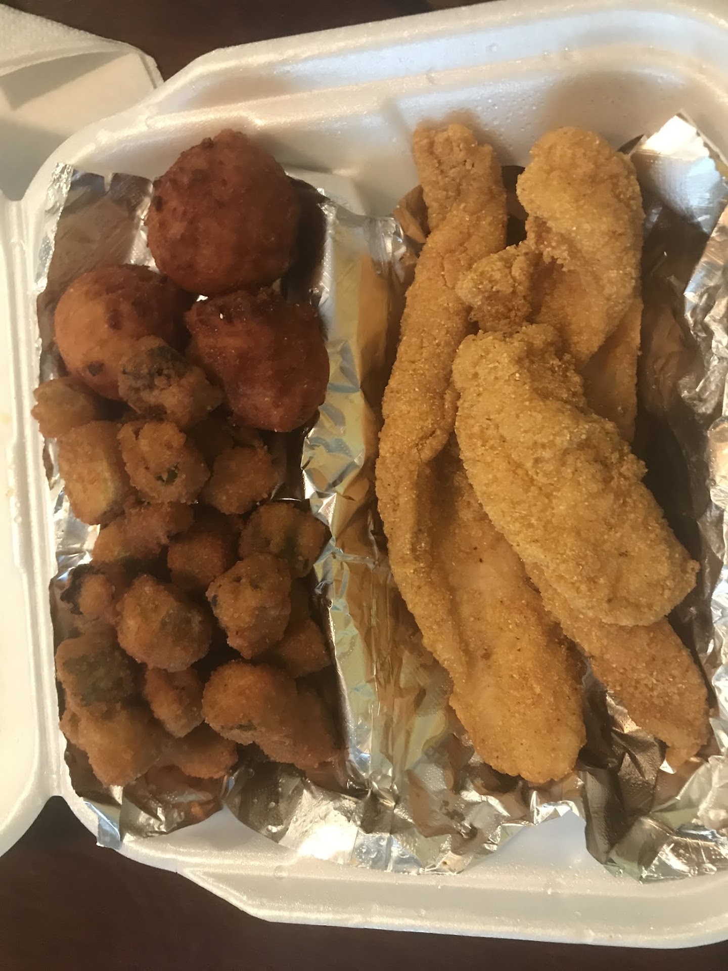 Read moreTA food was very greasy! No table service,I wouldn't RECKAMEND it, as it was advertised ! All the food is deep fryed ..Really greasy,The food all tasted the same,fish & shrimp& HUSHPUPPYS very small porshons, tea has pineapple juice in it! For two ,Got on each paper plate.. 2very sm.pieces of fish with A lot of batter,3 shrimp cooked with fish the same way,2 over cooked hushpuppys,hard to bite. Tea had pineapple juice in it..for 2 plates of this was over 40$$$ Very disappointed..The walls were senderblocks& posterbord magic marker sizens.with only a set of boxing gloves on walls.a very sm.sizn hanging that (said order here,pay here ,pick up here...) one person seam to be the only one there working in ta whole PLACE! It looked like somebody's basement..There was no pool table in that sm room!The advertisement made EVERYTHANG look so good! The PICTURES of the food,didn't look like what we got..I'm TRULY SORRY, but the truth is the truth.Go TRY it& SEE for yourself. This is only my VIEWS OF THIS PLACE.For us ,it was a waste of...