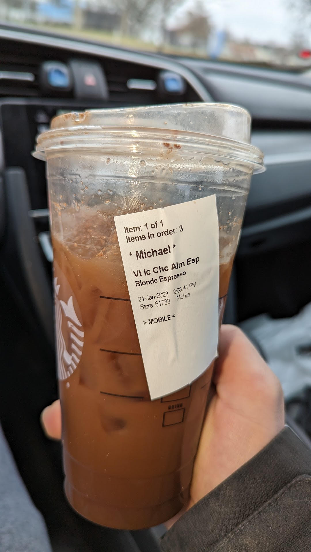 Then, today, my order was wrong again - I ordered one type of Frappuccino and received another. Again, wasted money on customizations. (It's not that the few dollars over a couple of orders is a big deal, it's that this location can't seem to get an order right.)