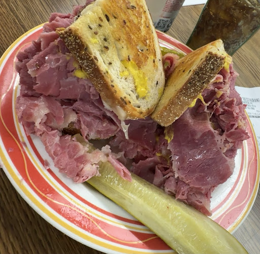 Fri 9/2/22 2:10pm Myself and my Client, went to the restaurant. I immediately noticed the man coming out of the back carrying a big pan of cornbeef with gloves on. The man end up being the person that handles the meat and prepares the 1st step with the sandwich (put the meat on the bread) So I watched him with the same gloves go under the cabinet, grab something, then start handling the meat again. When it was my turn in line, I politely asked the cashier if she could ask the man to change his gloves. The man yelled very defensively and said "I'm not changing my gloves." Then the cashier said " you can take it or leave it." In astonishment, I replied like: "yeah ill take it," because I knew my client was hungry. Then this lady comes from the back saying , what's the problem he's only touching meat." I said "idk what he's been touching In the back and unless it's meat under that cabinet, he should Change his gloves." By now our sandwiches are opened faced on the counter. The lady from the back leaned over our food and inconspicuously spit on both our sandwiches. I couldn't believe it! In disbelief, I pointed and yelled You just spit on my food. The lady never denied it. She just yell "bye, give her a refund, see this is why we should have closed at 2 o'clock." I told the other customers don't let them serve you those sandwiches because she spit on them. Wow I never experienced anything like this in my life. I was spending $32 on 2 junior cornbeefs and 2 drinks. I was looking forward to eating their food, but I will never eat there again, and if you the reader decides to go there please tell them to change their gloves after every encounter other than the food. No one there was apologetic and know one seem to care that I even accused the lady of spitting on my food which makes me think they do it all...