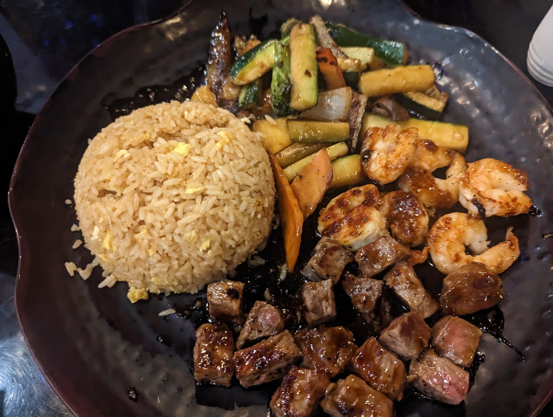 I ordered steak and shrimp hibachi ($24), which came with rice (white or fried) and sautéed vegetables. When asked how I'd like the steak cooked, I tried with "medium," however the steak and the shrimp were both over cooked and quite tough. I was disappointed in that, but overall everything was fresh, seasoned nicely, and plated well.