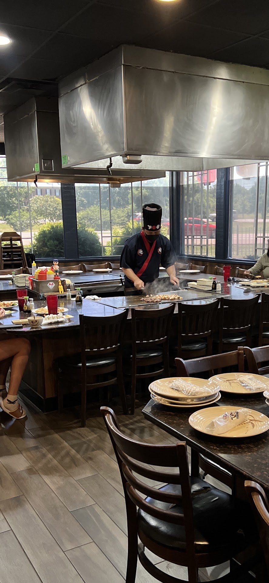 Read moreTotal Disappointment. Dull presentation. Loud and noisey. Burnt food. Rude server. Her name was Shelby. She displayed favoritism towards another couple sitting next to us, yet hardly paid attention to my son and I at all. It was my son's first experience eating Japanese and I wanted it to be memorable and exciting. We we're seated at a table with NO ONE ELSE sitting there and she put us in the far corner. My son wanted to sit in the front center so he could see. So we moved. When she came back to take our order 15 minutes later, she snapped at us for moving and said we would have to move back into the corner. I told her my son wanted to sit in the middle so he could see. And she said "Everyone wants to sit in the middle, but we have other people who we need space for." Then added "if no one comes in, you can sit there." We got our drinks and sat there another 30-45 minutes before anyone ever came back in there. 2 young couples came and we're then seated by Shelby on the sides of the table, neither one got the center where we had tried to sit. Our glasses still sat empty while she promptly attended the couple sitting next to us. "Anything to make sure you're comfortable here" she would say as she served them with a smile. Another server brought us our soup and salad. Just as the cook arrived to start the show, Shelby came in and removed the center 2 chairs and table settings where my son and I attempted to sit. She said "we need more space here" but she only moved the chairs to the back of the room against the wall, so we COULD HAVE sat there with no issues. The cook burned the eggs in the fried rice. And also put food on my son's plate that he clearly stated he didn't want. Shelby snatched my soup away from me before I was finished with it and slid all the soy sauce and seasonings towards the one couple next to us. Both my son and I felt very unwelcome. And then less than 30 minutes after leaving, I got sick and what I got to eat, came back to haunt me. One of the worst experiences...