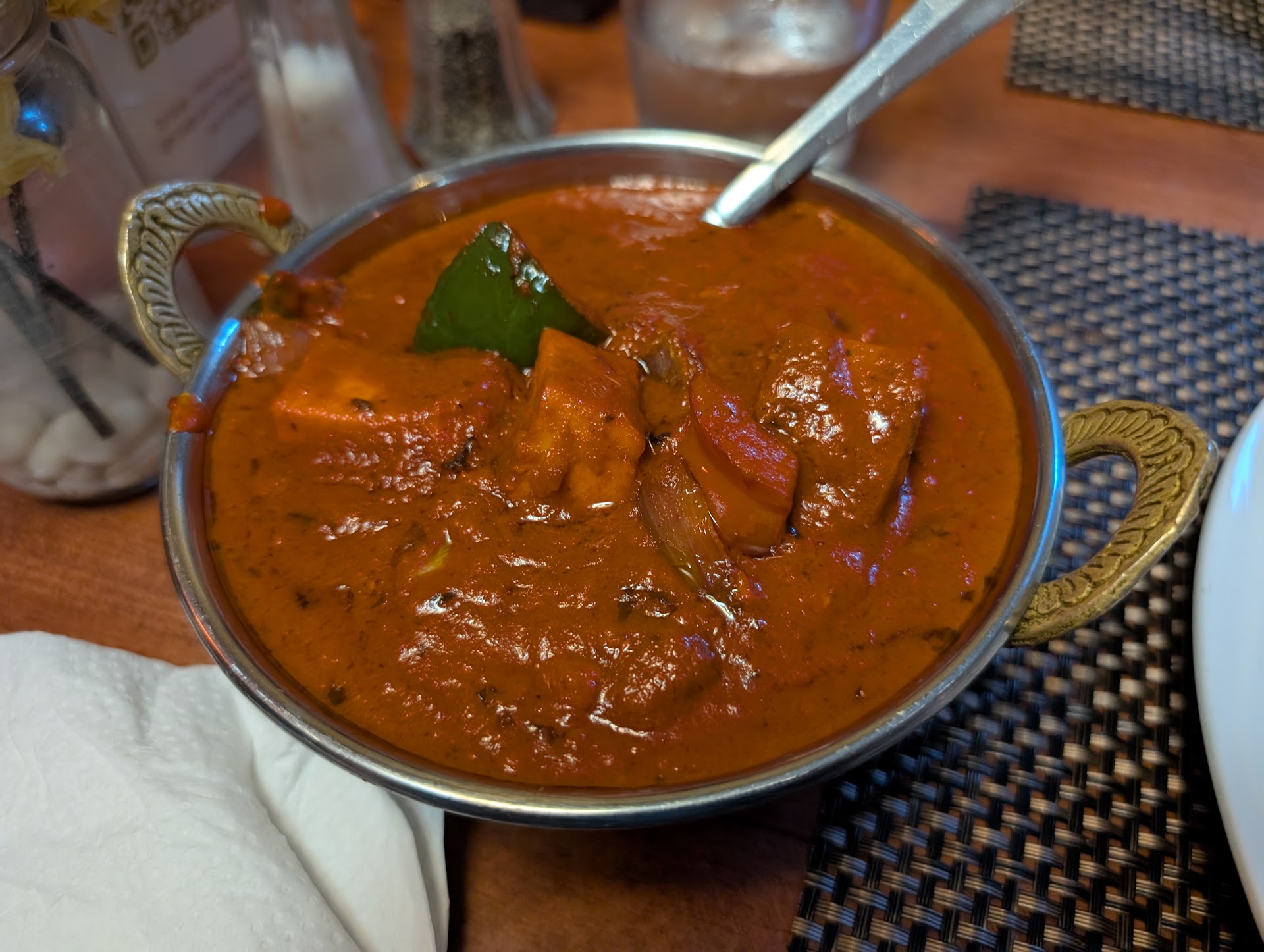 The service is really good, though. You're immediately greeted when you enter, as soon as you're seated you're brought over some complimentary papadum chips and dips to nosh and waters are always filled - almost obsessively so. They also do a nice job of pacing the dishes, which can be a big deal if you want to sample your way around the menu.