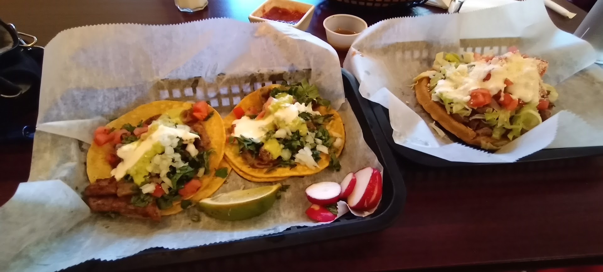 👀 My l♡VE & I had a hankering 4 something different & local we then decended upon Tapatias which we gotta say was the BOMB 💣. COM !! Although our order was To~Go we walked in 2 A) look at menu place order check out the place 4 numerous reasons but most of all cleanliness & how we're greated - spoken 2 as well as knowledgeable on menu favs & suggestions which I may add the gentlemen who greeted us took our order i had inquired about 3 diff things he was on it not 2 mention he made sure 2 let us know that im the donning area there was a little buffet style/lazy-susan of condiments pico de gallo, s.cream, mild, lil-hot, hot(caliente) salsa shredd lettuce, etc this was 4 one very clean not 2 mention all in a chilled individual compartments well stocked as well as plexi-glass that covers/refrains from people & their germs did I mention that even tho we were getting take out if we wanted any XTRAS of anything we could help ourselves & it was FREE !! Most Deff a nice surprise considering everything everywhere is always extra extra extra ...... Being that this was our 1st time trying out Tapatias Taqueria which we only got 1 dinn it was the combo fajita dinner platter plenty of food & prices not bad It Was Mucho Grande(big-alot) food for 2 adults 2 share. We gave (🌟 ⭐🌟⭐🌟) Cinco Stars from start to finish we were very pleased, satisfied & Most Definitely ya know we're coming back we'll have NP letting our Friends & Familia Know this as well !