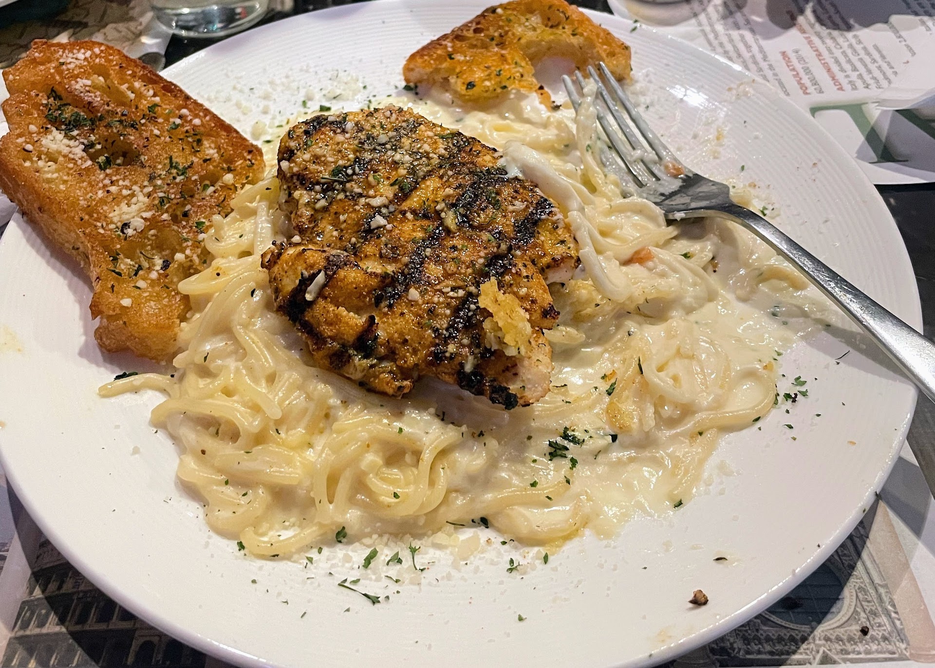 I have a group of friends who get together for food and drinks monthly. We try to go to different places each time and in February, one suggested Borgata. I was skeptical at first due to the parking situation in Little Italy, but she insisted that their food is superb and that it would be worth the hassle! I thought… superb food? At a bar?? Whatever… ok. So 8 of us show up and I ask my friend what she recommended. Without hesitation, she said the blackened chicken Alfredo. Sure. Turns out that half the table took her advice and ordered it. The rest got burgers. When they brought our plates, I had a couple of quick reactions: They serve it with spaghetti instead of the usual fettuccine. Compared to the others who ordered the same dish, my piece of chicken was very small, which actually made me privately upset that I wanted to point it out to our server, but decided not to. I bit my tongue, then a slice of the chicken after. OMG!!! Anger gone! So tender. So flavorful. Perfect charring! And, OMG!! The 3 pieces of garlic toast that comes with it is no toast that I’ve ever had before! If the dish didn’t come with chicken, I swear that toast could’ve been the feature! It’s seriously that good! The Alfredo was rich and creamy and the spaghetti actually worked well. If I had to be picky, it’s that they don’t have a great beer selection. But I like food better than beer anyway, so I didn’t mind. Borgata, I...