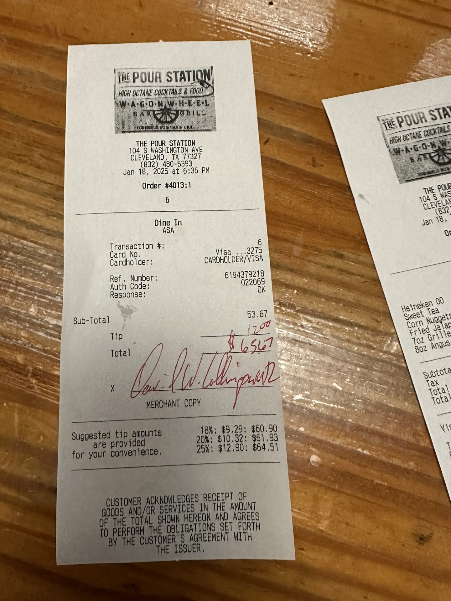 Read moreDeeDee my wife and I have been to The Wagon Wheel at least 4 times in the last 3 years, and normally I'd say for everybody to go. The owner has always been nice and greeted us or talked motorcycles, whatever. We're creatures of habit and usually sit in the same table every time, but yesterday we went in and someone was already there, no big deal we were thrown off, but quickly recovered and sat at another table. I just about always order a pizza and let my wife try whatever she wants and she usually gets mushrooms while I get the deep fried jalapeños for an appetizer. I noticed they had an Angus Beef Chicken Fried Steak on the menu, and DeeDee wanted the grilled chicken breast. Bad choice, we really regret changing from the usual pizza. The batter was infused in the meat and the whole $16 steak was infused with mushy dough like it was a meat filler instead of Angus Beef. The chicken breast tasted like a bland prepackaged frozen piece of meat. I ate a few bits of the steak and peeled the breading off and tried some of the meat and that's when I used my phone flashlight to look at the patty and all I could see was the dough and little meat grains as if it was meat filler instead of a steak. We mentioned our experience and paid before we left, but "if" we go back we'll stick...