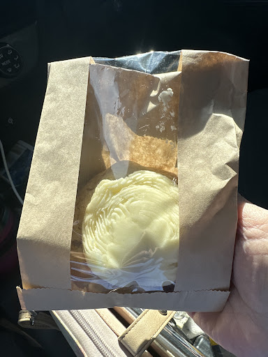 The concept of the combination of a nutrition shop and a bakery felt very odd. The cases had 8 lovely cheesecakes, 8 stuffed cookies (one flavor) a tray of cupcakes (one flavor) but also in the cases (between the cheesecakes and cookies) were salads and one lone sandwich. Odd. The friendly gal behind the counter kept sniffling and wiping the snot from her dripping nose with her HAND while eating something and smacking her lips. So gross. The beautifully decorated cookie was put into a paper sleeve, smashing the top and leaving frosting on the inside of the package. It’s a mess so I’ll have to wait to eat the messy cookie...