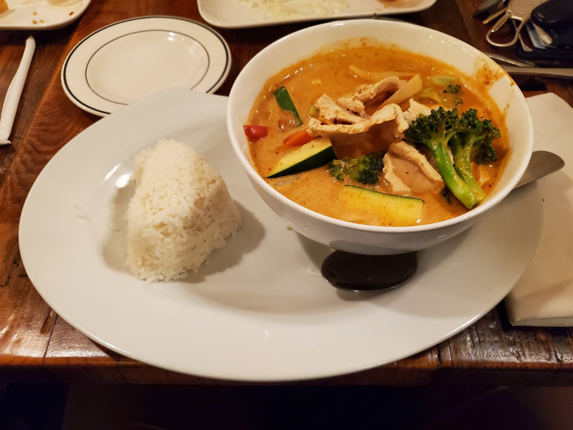Read moreMy friends and I stopped in here with a craving for Thai food. Overall, I am glad we chose this place, and I would recommend it to anyone with even the smallest hankering for Thai cuisine! For appetizers, we tried the Ty Fun Delight, which had fried tofu and spring rolls; as well as the Wonton Chicken, which was a deep fried meal. They were good for what they were. The Wonton Chicken felt a little bare, like there just wasn't enough flavor. I also tried the Tom Yum Soup with tofu, and it was very delicious. Exactly what was described. For meals, my friend and I both ordered the Masaman Curry, so I included only a picture of the one I got with chicken. The curry itself was good and had just the right amount of spicy flavor. The rice portion felt a little small, unfortunately. My other friend got the Pad Thai, which was also quite delicious, if a little on the dry side. I tried out the Thai Iced Tea as a drink, and it was the perfect complement to the heavy and rich tasting curry. Overall, a...