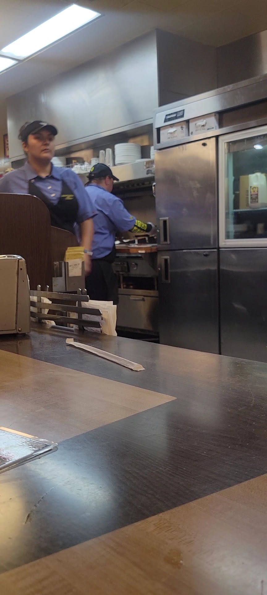 Read moreMy wife and I decided to take the kids out to lunch. The waffle house had maybe 6 customers in the entirerestaurant, so we sat down at what looked like the cleanest possible table in the restaurant. One server came over with a friendly attitude, gave us our silverware and took our drink orders. When we were ready to order another server came and took our food order. This server had a very nasty and unfriendly attitude, pretty much dropped the food at the table, didn't once offer to refill our drinks or if we wanted any to-go cups, just absolutely horrible customer service. After she slapped our ticket on the table, this server went out back for a smoke, so as we were paying the original server that greeted us when we came in, we checked us out. My wife asked why our server was so rude, and the server who is also the manager said " it's almost 2pm she gets off at 2 so she's ready to go"