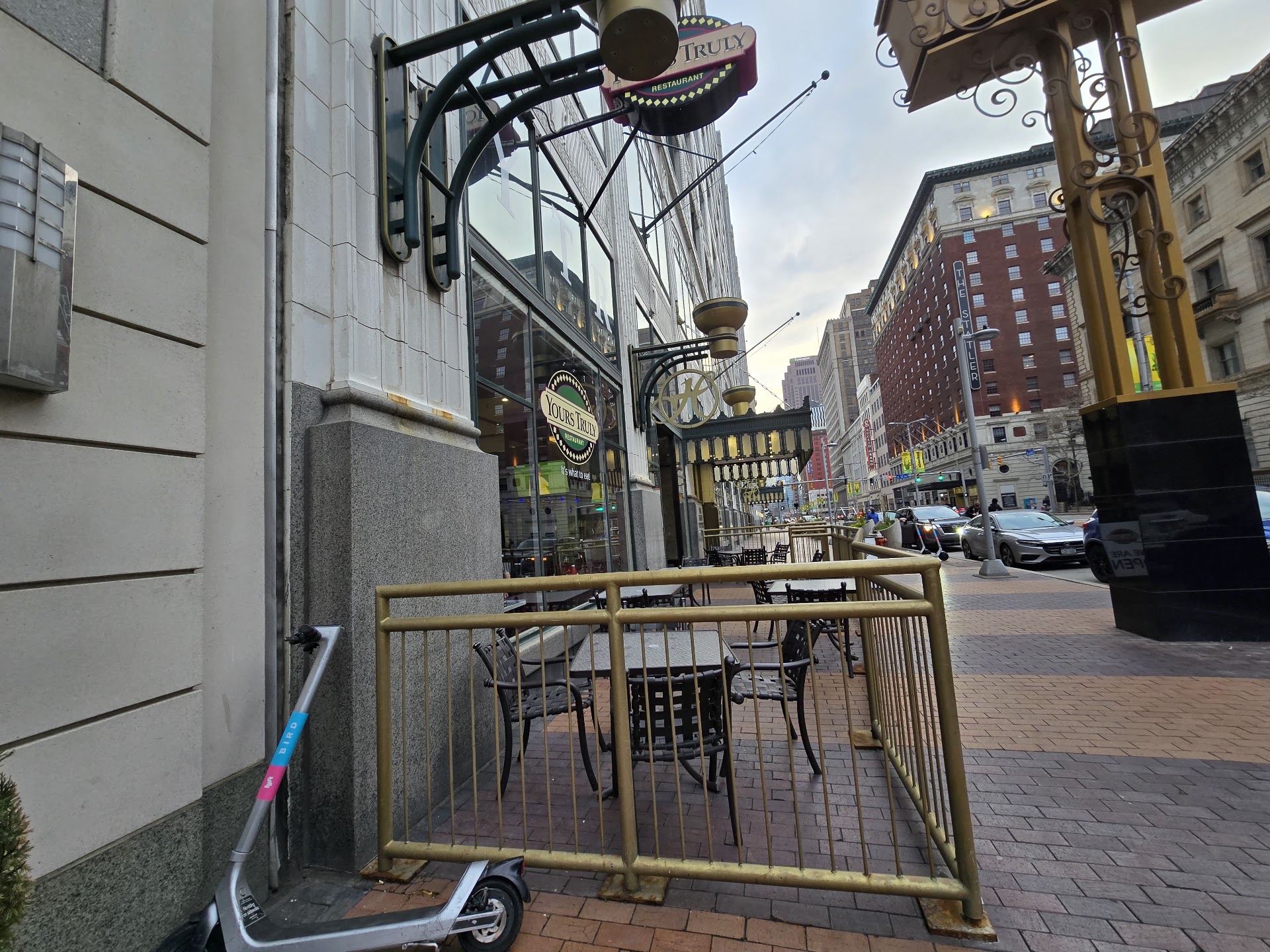 I've been to other Yours Truly's, so I decided to check this one out as well. That was a big mistake. First off, the service here is incredibly slow. I'm glad we had 2 hours before our show at Playhouse and had time to kill. The table we were sat at could only be described as incredibly small, and it literally just sat in the hallway next to the bathroom. You know, prime seating for a night out. Do not be fooled by the nice entrance. You most likely will not sit there. Also, our appetizer and entrees salads everything came out at once. This table is very tiny it could barely hold everything, and to beat all the servers never came by to pick up dishes, so we were left playing Jenga with dishes, so we had room to eat. The food was fine, not great, not bad. You can find way better steps away from this place. Yes, this place is cheap for downtown. But you're in downtown live it up a little. The drink here was called clevelands finest, and it was truly awful it's their take on a n okd fashioned, you know, a pretty save drink. It had seeds in it. They crushed and orange and cherry into it and did not strain out the seeds. It was not fun drinking something and having to pick seeds out of your mouth. It's also a choking hazard. So drink here at your own risk. When I say it had seeds, I'm saying like 6 to 8 in it. Now go to any other Yours Truly they're great, in fact this experience made me want to go to another just to experience a good one. One last thing as well the notso fries there version of loaded cheese fries was cold. The cheese was hard and cold. The pictures on this review make it look way better than it was. Just try somewhere else in the playhouse district for a good meal. Naturally, this being downtown, there is not dedicated parking for it, so you will either have to do street parking or a...