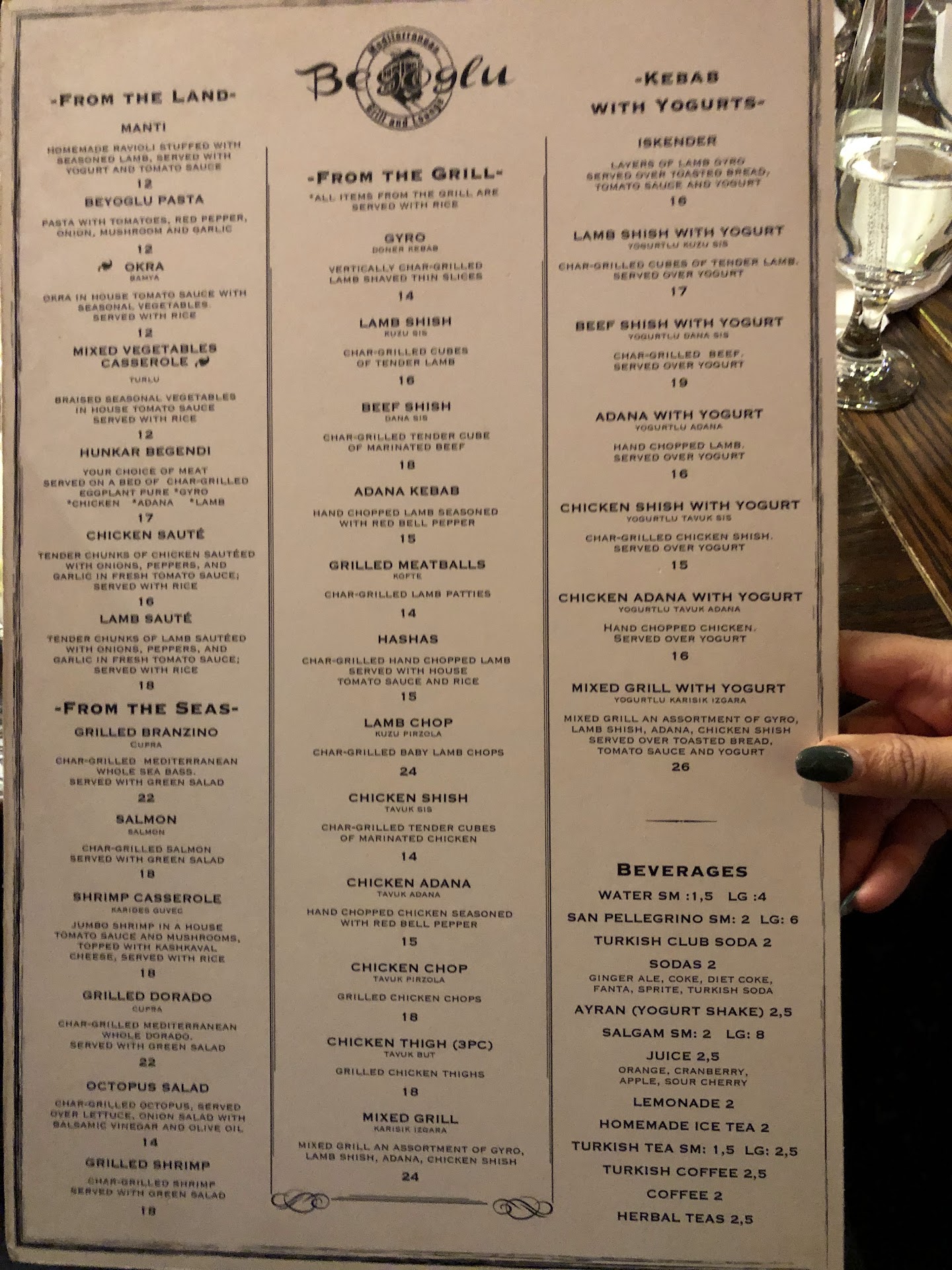 Service is actually TERRIBLE, servers are inexperienced, they sit you down without setting up the table, and even though I pointed out before ordering my food that my silverware was missing I didn’t get it until after we received the cold appetizer WITHOUT the bread. My main course arrived , Hunkar Begendi, while we were still having our salad and appetizers (I eat fast but not that fast) first time in my life I actually asked the waitress to keep my dish in the kitchen. Little later, while we are still having our appetizers, waitress came back with both of our main course and she couldn’t find a place to set the dishes since table wasn’t cleaned, we were still eating.