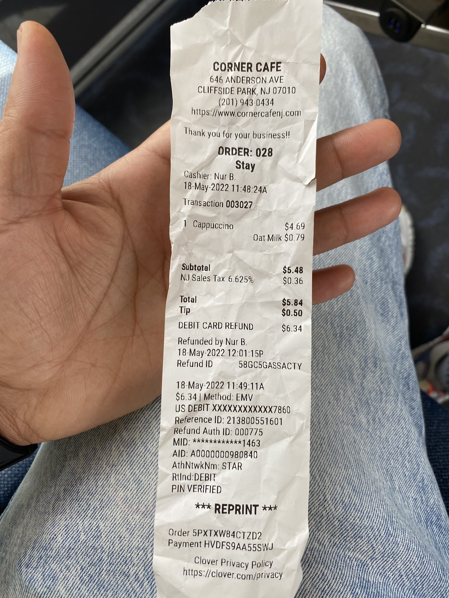 I order a regular cappuccino with whole milk cashier named Nur.B thought I said oat milk. So she had to remake it with whole milk.