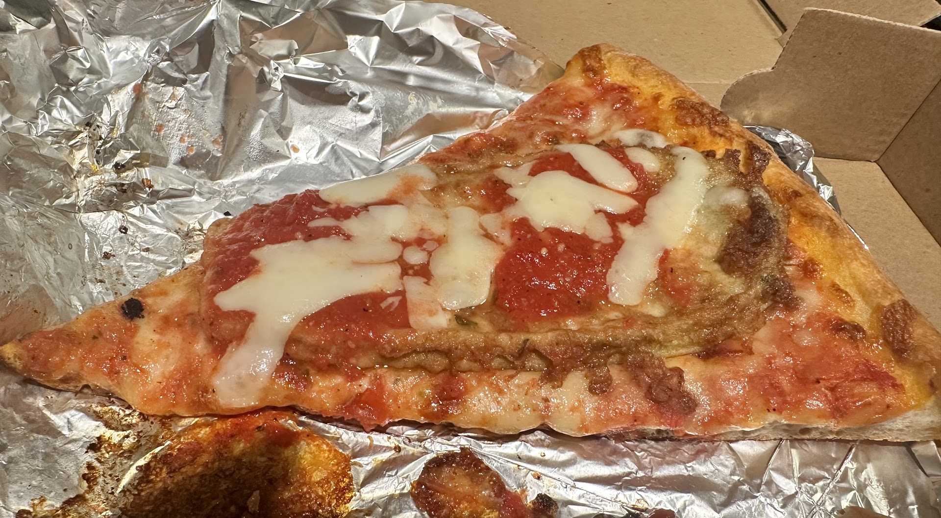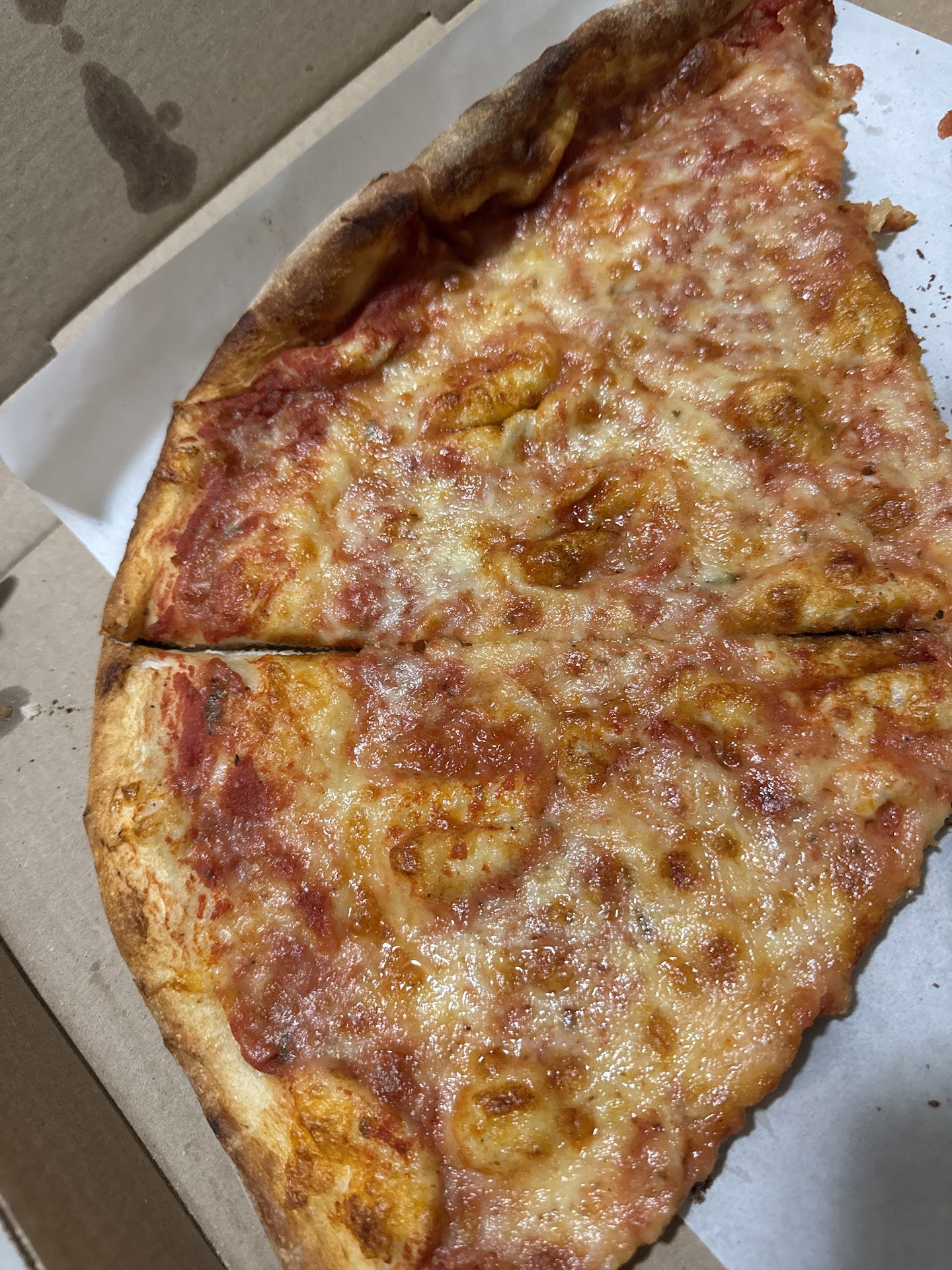 I ordered a pie and a white slice from Vincent’s via Slice and what I got was a pie that looked like it had been cooked and reheated one time too many along with a white slice that had the consistency of a sponge.