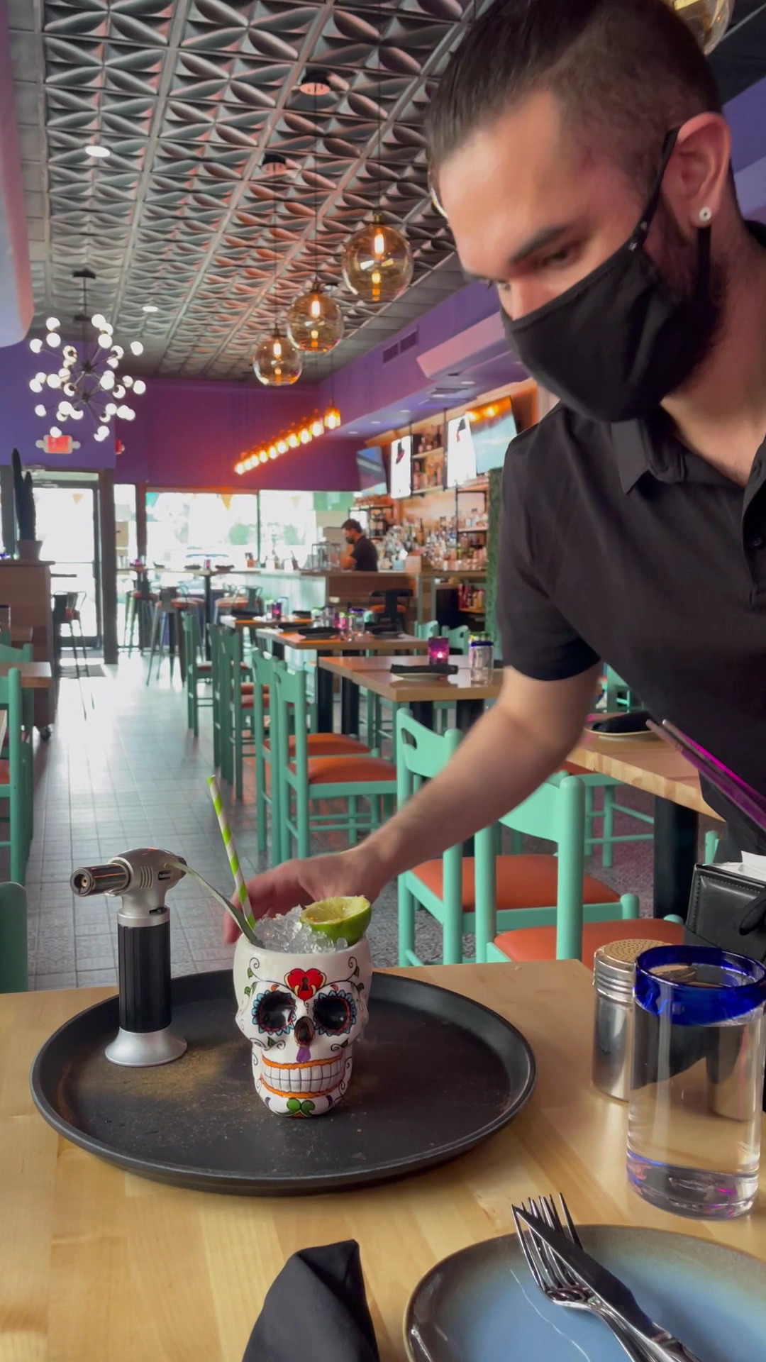 If I could give this place negative five stars that would have been better. I will try to summarize the most horrible restaurant experience of my life, quickly. It was my one of my best friend's birthday and it was 5 of us girls going out we are in our early 30's, she chose this place because 1 it was close to home, and 2 we all love Mexican and why not find new spot and support new local small business. She made a reservation for this past Saturday at 7:30pm. The hostesses were very sweet when arriving they said hello and welcomed us brought us to our seats. We were seated in the back at the end towards the kitchen. The place we beautifully decorated like most Mexican restaurants and seemed like such a cute vibe, although very small in the inside, very cute. So after a few minutes our waitress arrives, asked us what we would like to drink, if she could start us off with drink, we all put in our drink order, music was a little loud so we kind of had to shout a bit but it was too much of a big deal. So when our drink finally came, my friend asked her is we can get a straws for the table, because we all did not feel comfortable to place our mouths directly on the glass, we waited and we waited 5 minutes pass by no straws, we tried to get her attention, still nothing at this point we asked another random waitress if she could get straws for the table, because our waitress forgot and hasn't come back, and if she knew who our waitress was if she could please get her for us that we were ready to order. (RED FLAG 1) she was so sweet she came right back with with the straws and said that the waitress was on her way. A few minutes later finally out waitress shows up, we tell her that were ready to order we all take our turn placing our orders. One of us pics and appetizer as an appetizer but however it never came out as an appetizer it came out together with her meal (RED FLAG 2). Then when our meal finally comes out I was shocked!!!! to the point I had to revisit the menu to make sure I did not order off the appetizer/ maybe tapas sections. I ordered Tacos al pastor one of my girlfriends the beef tacos my other girl friend chicken tacos, our mouths dropped, while they looked good 1. they were too small and not filled enough very skimpy and 2 THERE WAS ONLY 2 TACOS! Never in my life have I ever been served ONLY 2 TACOS! (RED FLAG 3) Rule of thumb in every Mexican restaurants is 3 to 4 tacos! Okay so after the shocked left, The Taste, Decent/Good Had Wayyyy Better, but it wasn't bad lacked a little in flavor and all of the other girls stated the same about there meals. Rewind to the Drinks, so one of my girlfriends orders this flaming skull drink she saw on Instagram, when it came out so cool she thought, or so we thought, she said the taste was absolutely horrible it was like a sweet bowl of sugar, My other girlfriend ordered a drink that came in a little birdie glass and when I say little birdie glass little like two small sips and your DONE, like are you kidding me the drink was $13-$14 for 2 small sips I kid you not this drink was TINY! (RED FLAG 4). My 5 year old also came with us and when I asked if they had a kid menu they said no(okayyyyy) that's fine weird but that's fine is what I thought to myself. She ordered to make my daughter a quesadilla, I told her that would be great I ordered it with chicken and cheese. Ready for RED FLAG 5!) when you think of a quesadilla don't you think of a flat round disc cut into 4 well now knowing that they only gave 2 SMALL TACOS NOT EVEN FILLED. There was no quesadilla, what they did was they took a blue corn tortilla of the same size of out tiny taco and they stuffed it with chicken and cheese they did not really flatten it and that's it it was no round disc cut into 4 it was 1 taco they called a quesadilla so technically half the size of what a quesadilla is suppose to be but get this KIDS "QUEDDILLIA FOR DOUBLE THE PRICE OF MY 2 BABY NO FILLED TACOS! I KID YOU NOT I WISH IS WAS...