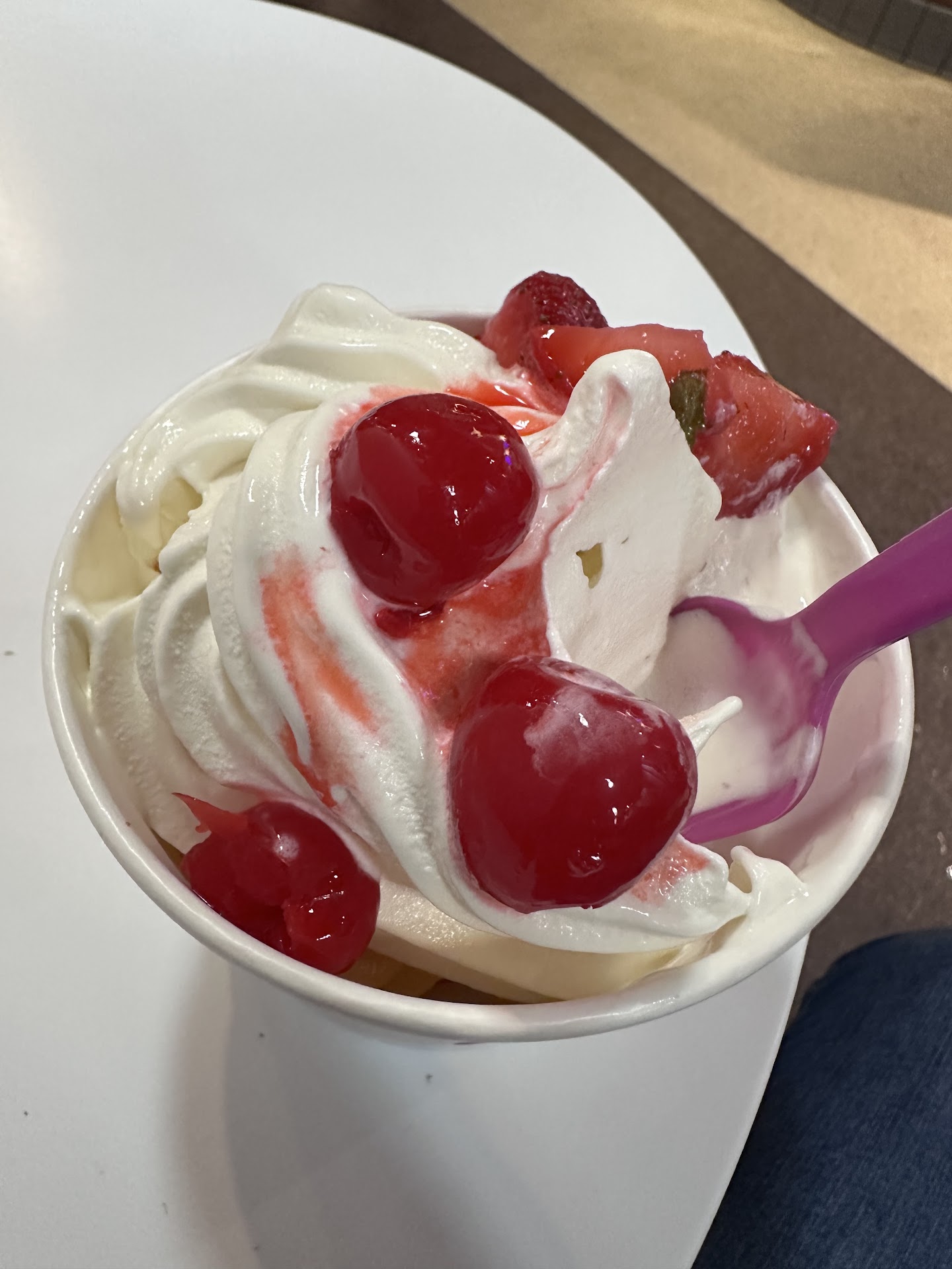 Read moreDelicious but a little bit pricey. Many of the flavors here are absolutely delicious and without a doubt worth a try although I would avoid the EuroTart! Yes that's the name. I would call it a sour ice cream intentionally made so I believe you might want to try it as a challenge! core here is really cool I love the 60s vibe to the police and their seats inside to sit out. They also offer water so you don't get too thirsty after eating all the delicious yogurt! personal favorite is usually chocolate and chocolate peanut butter mix! Don't forget the toppings though. They have a multitude of topings to put on there as well as whipped cream and hot caramel! Just remember it is cost per pound so most people go more than they wanted to spend if they're not careful. When you walk in they have little tiny sample cups which is great because as I said if I gone too much of that euro tart I would not have been pleased. LOL And don't forget to tip for...