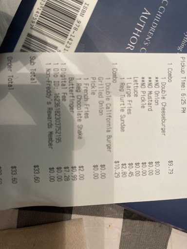 We get Freddyâs all the time, they have never messed up our order. Upon receiving itâs always fresh and amazing. This time was completely unexpected and unacceptable. Our food was cold and disgusting, by the time we received our food it looked like it had been sitting on the counter for ever, it was cold- presented in our bags poorly. We ordered a plain cheese burger meal, the receipt even shows it and they put everything on our burger. They gave us 2 small fryâs instead of large and regular. We tried contacting them regarding our order (we door dashed) the line was ringing off the hook and we never got through to somebody. What a waste of money. Most certainly lost my business! Wonât be ordering or stopping in again which is a real bummer because I rather do enjoy...