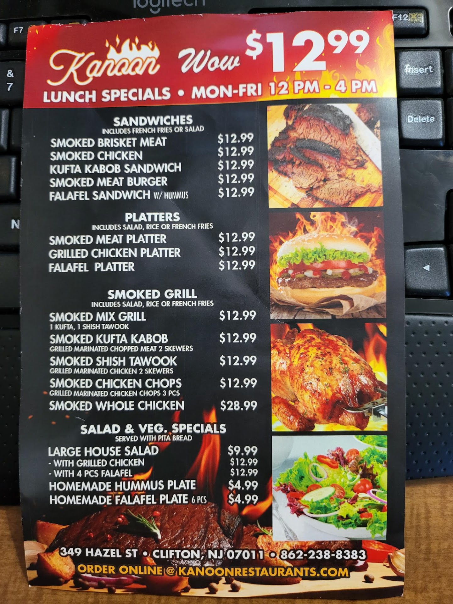Read moreI tried the Kanoon Restaurant today, at 2pm I was sat and given the dinner menu, I had to ask for the lunch menu (12-4pm) this was a bit of a turn off to begin with. I ordered the brisket sandwich and a bottle of water. shortly after I was brought out a trio of dips, sweet relish, coleslaw, and a tomato pepper hot relish and cut up pita bread. then a few minutes later I was served a fine chopped tomato and cucumber salad that lacked vinegar and salt. I asked for some vinegar and the waitress asked another employee and they just stood there and a few minutes later they took a gallon of white vinegar out of the refrigerator and she walked to the rear of the restaurant and it took forever for her to come back with a little plastic cup of vinegar. Why would a restaurant that serves multiple salad options not have Oil & Vinegar in dispensers for the table? Shortly after she came out with a little black bowl with a few mini potatoes and a few slices of sweet potatoes. They were good but a bit too spicy. Shortly after she came out with a round wooden cutting board with the restaurant logo on the handle. There sat a wrap filled with large chunks of brisket and a delicious BBQ type sauce. the odd thing is I ordered a sandwich not a wrap. A smoked brisket sandwich should be on a bun, unless you have it listed as a wrap. The chunks were much too large. On a wrap it should be shredded up. Along side the wrap were sliced tomato, onions and a mixed green salad with no dressing. Shortly after the waitress came back with a cute little fry basket filled with delicious crunch French fries.