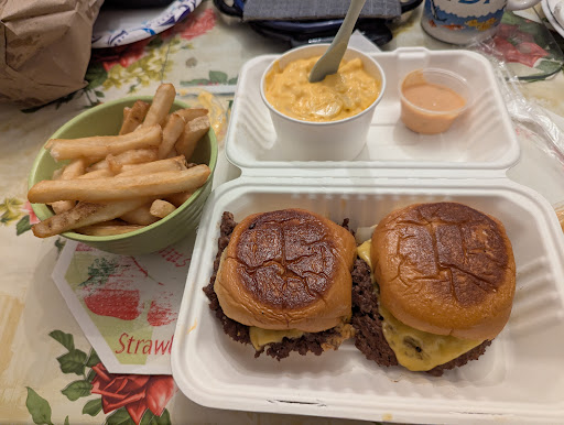 They are a decent enough size, tastes great, very consistent "triple smashed" style burgers. I've eaten from here many times with my partner and fam now, first time ordering alone and so satisfied. Fries go pretty well with the Mac & cheese, or slapsauce. Burgers and fries are perfect alone really, I think the only improvement I could hope for with the platter pictured below is a white cheddar mac instead, but it's decent enough.